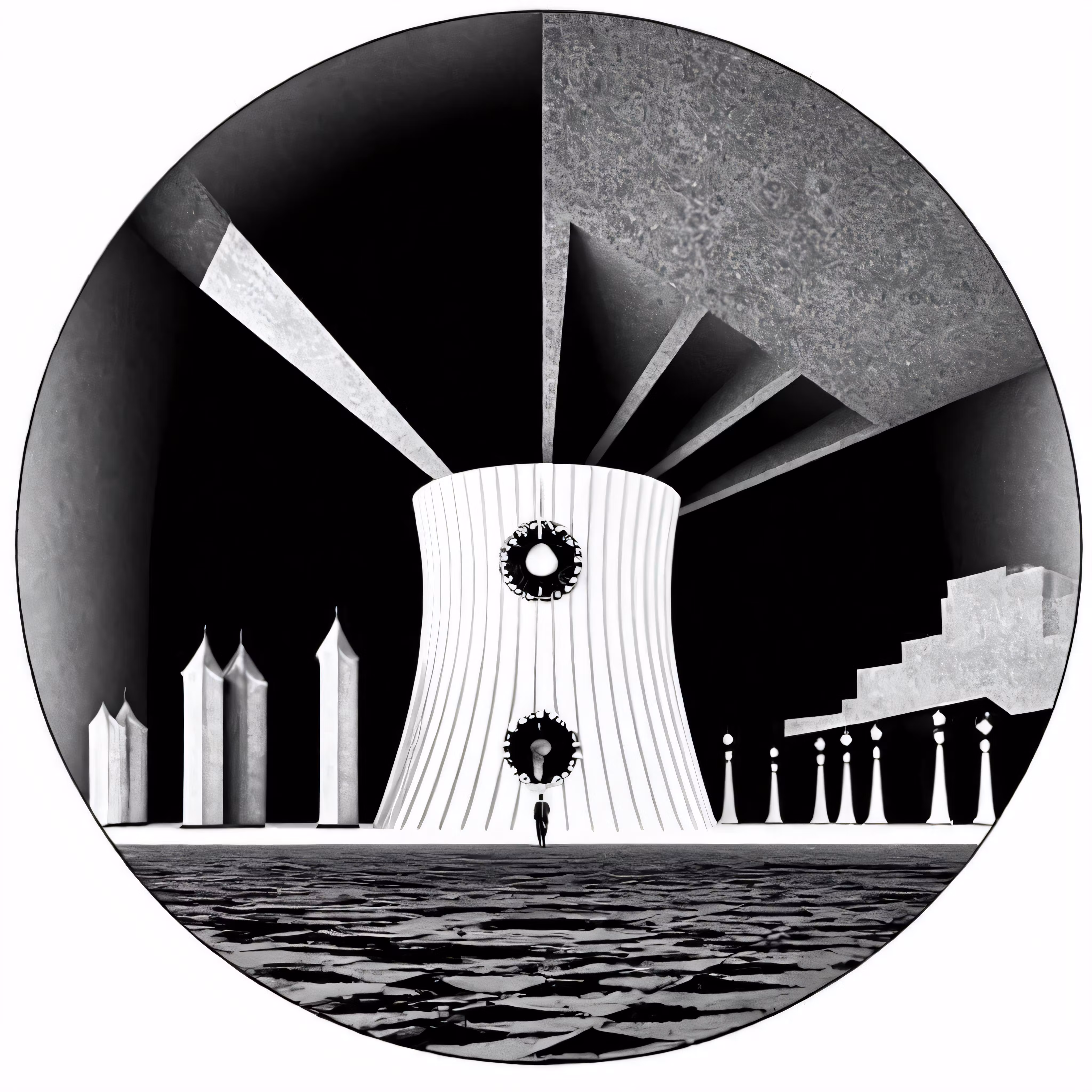 High resolution picture, free to use, a drawing of a futuristic city and tower