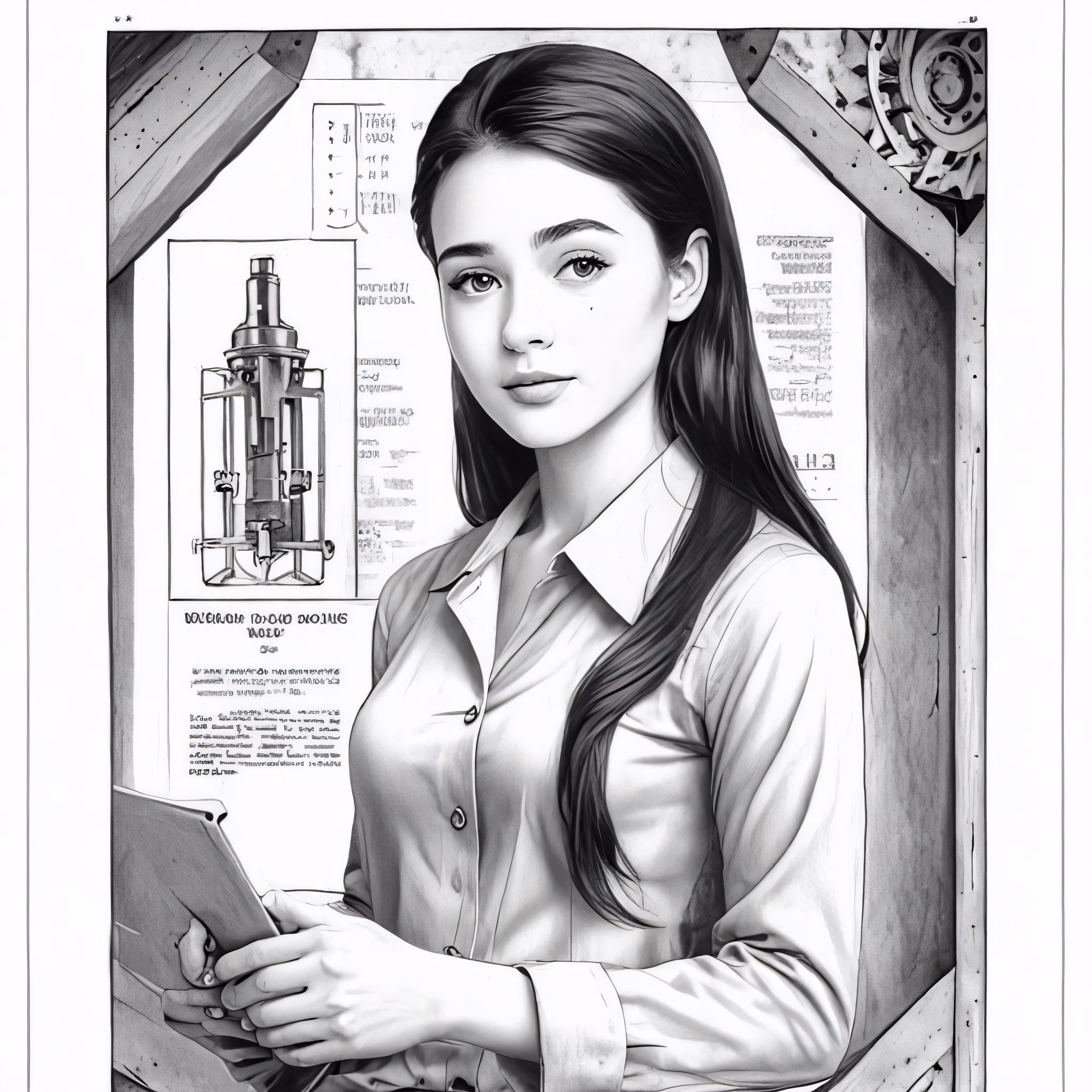 High resolution picture, free to use, a drawing of a girl holding a clipboard