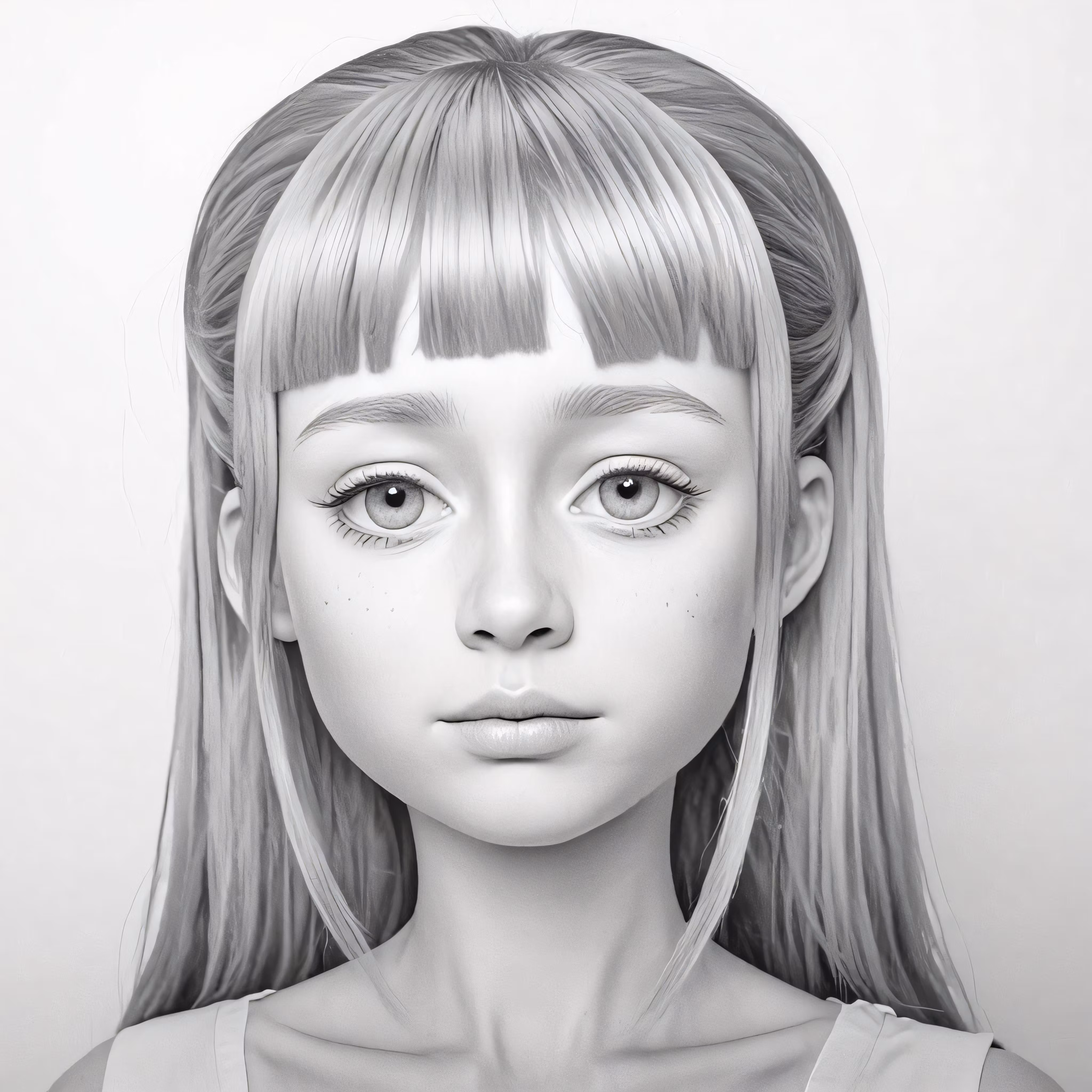 High resolution picture, free to use, a drawing of a girl with hair in a ponytail