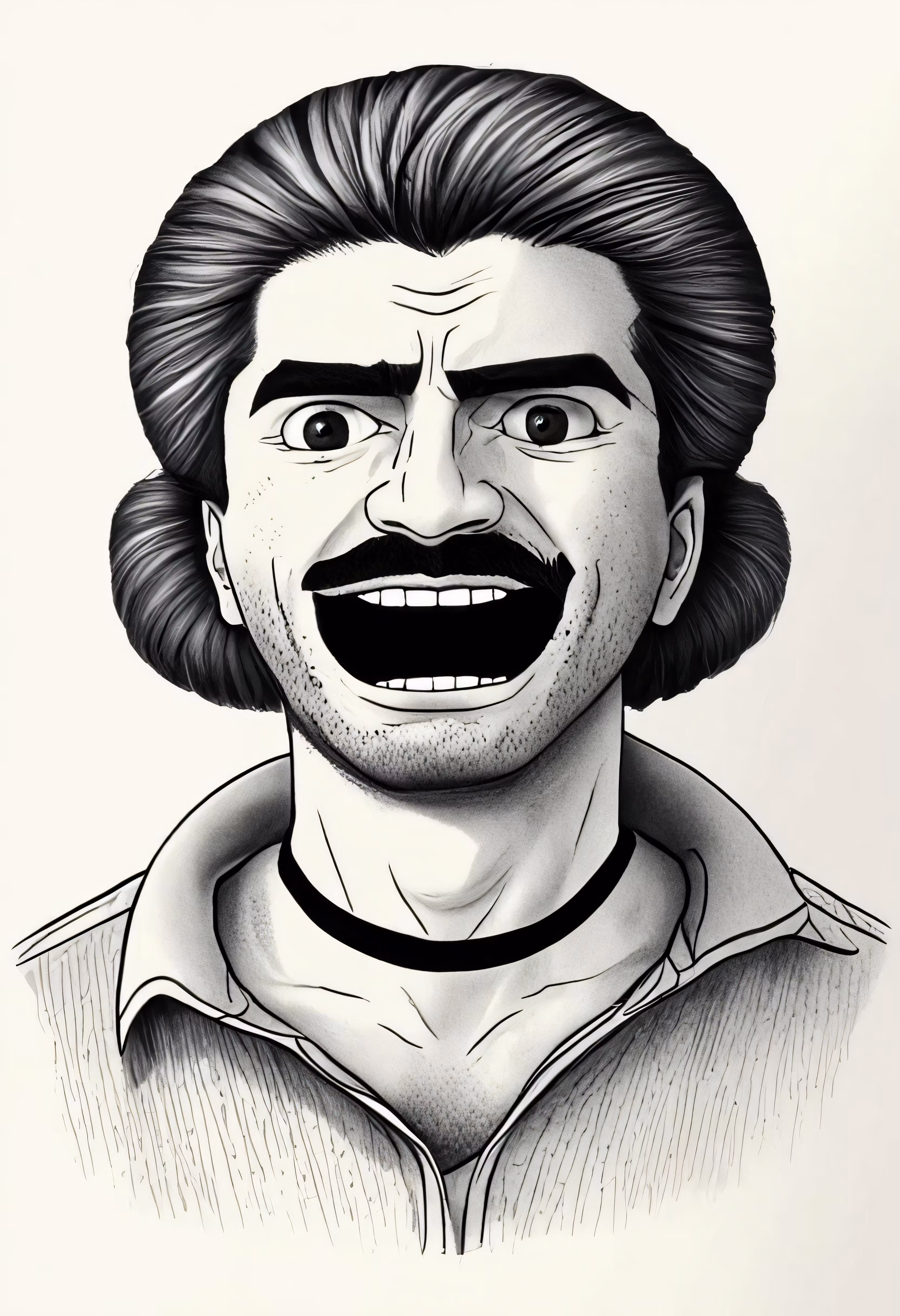 High resolution picture, free to use, a drawing of a man with black hair and facial expressions
