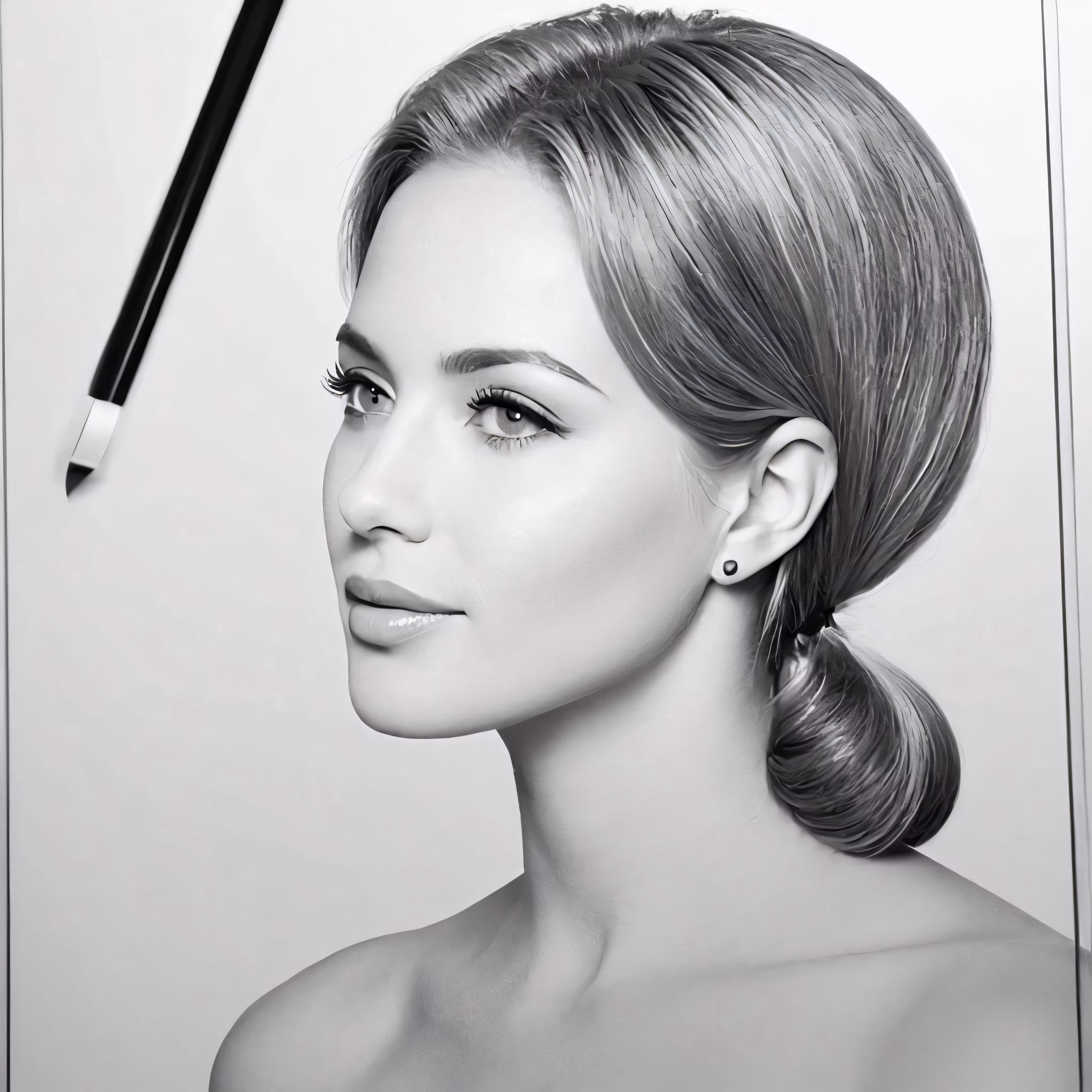High resolution picture, free to use, a drawing of a model in black and white with a mascara