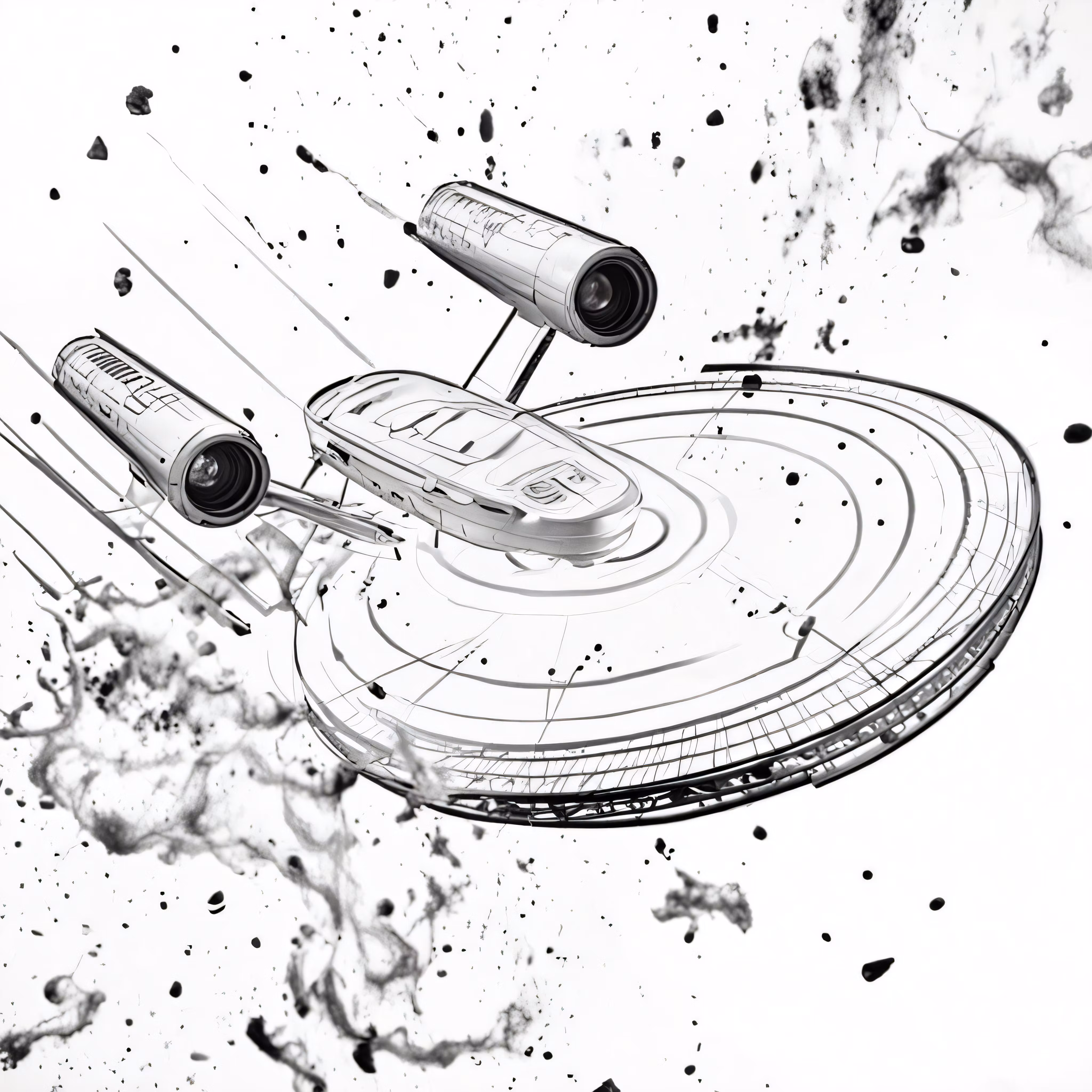 High resolution picture, free to use, a drawing of a spaceship and some other objects