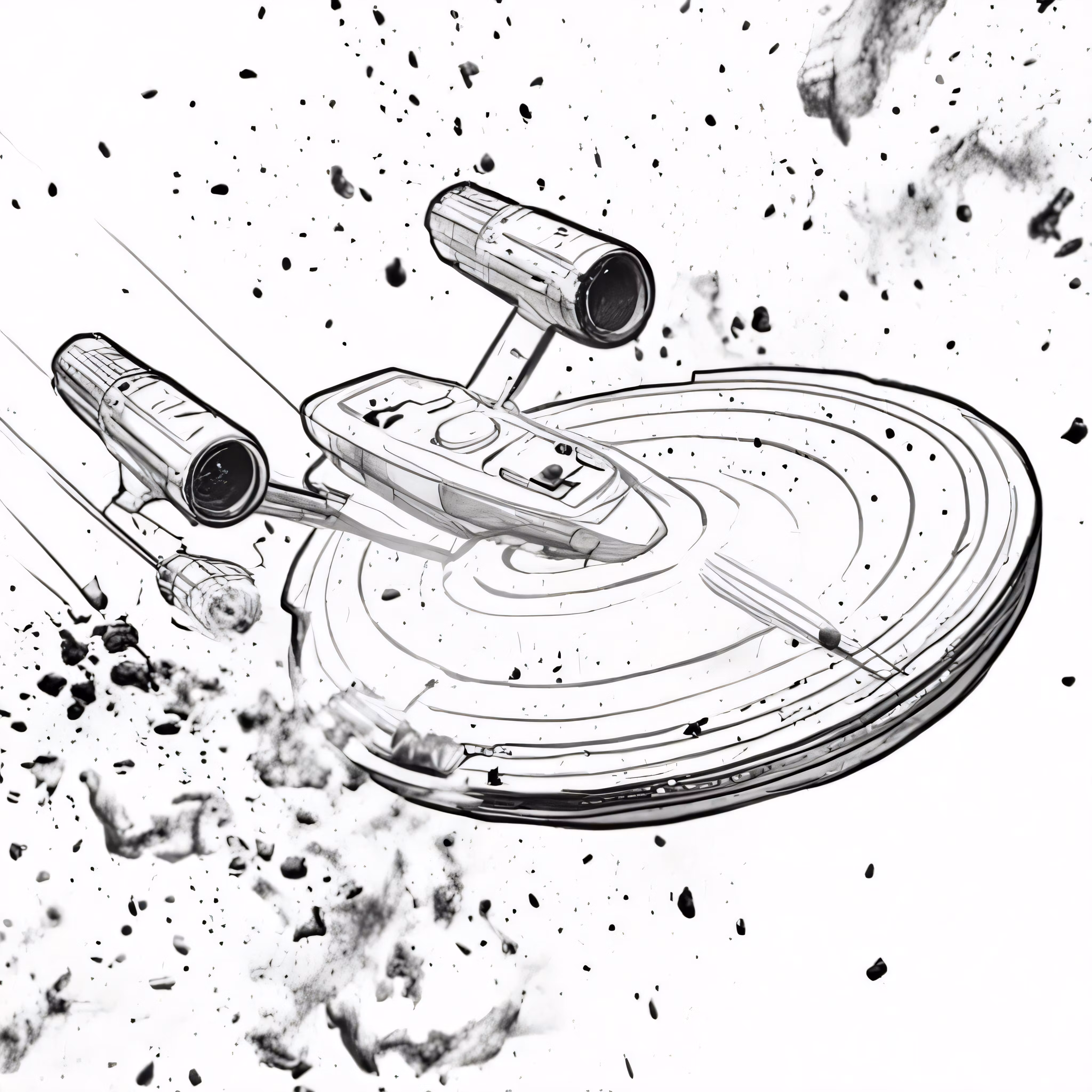 High resolution picture, free to use, a drawing of a spaceship flying through the air