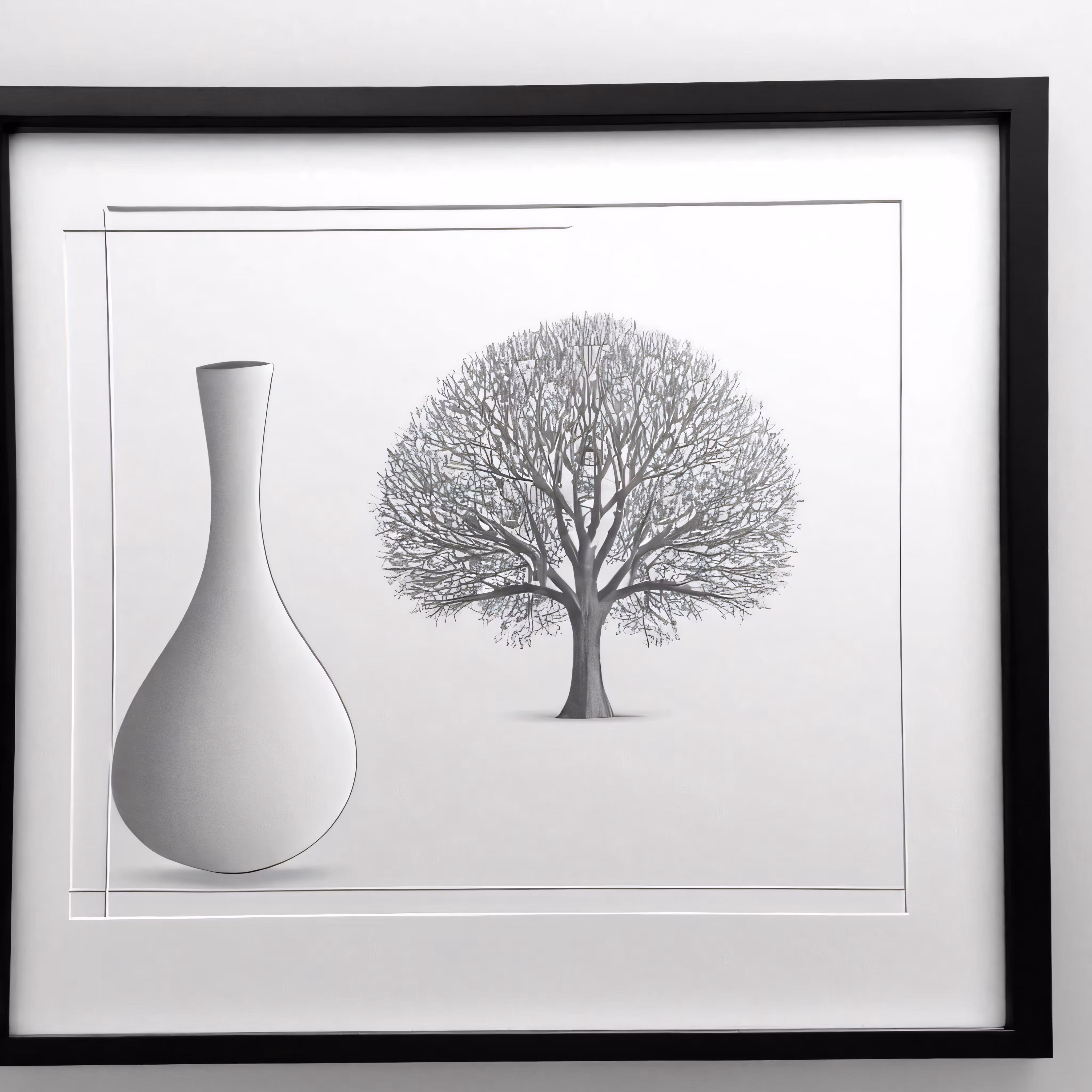 High resolution picture, free to use, a drawing of a tree is shown in a black frame