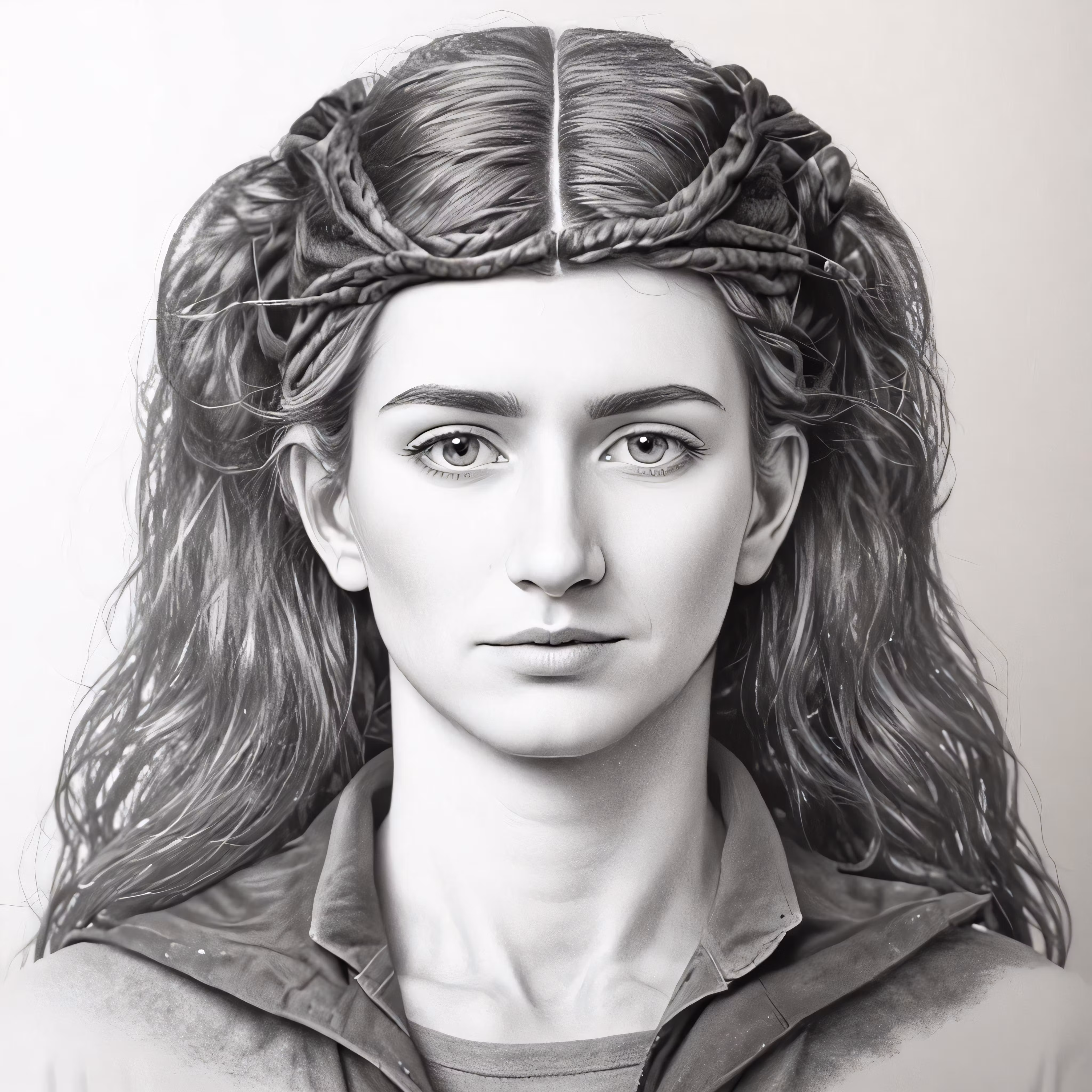 High resolution picture, free to use, a drawing of a woman in a hoodie