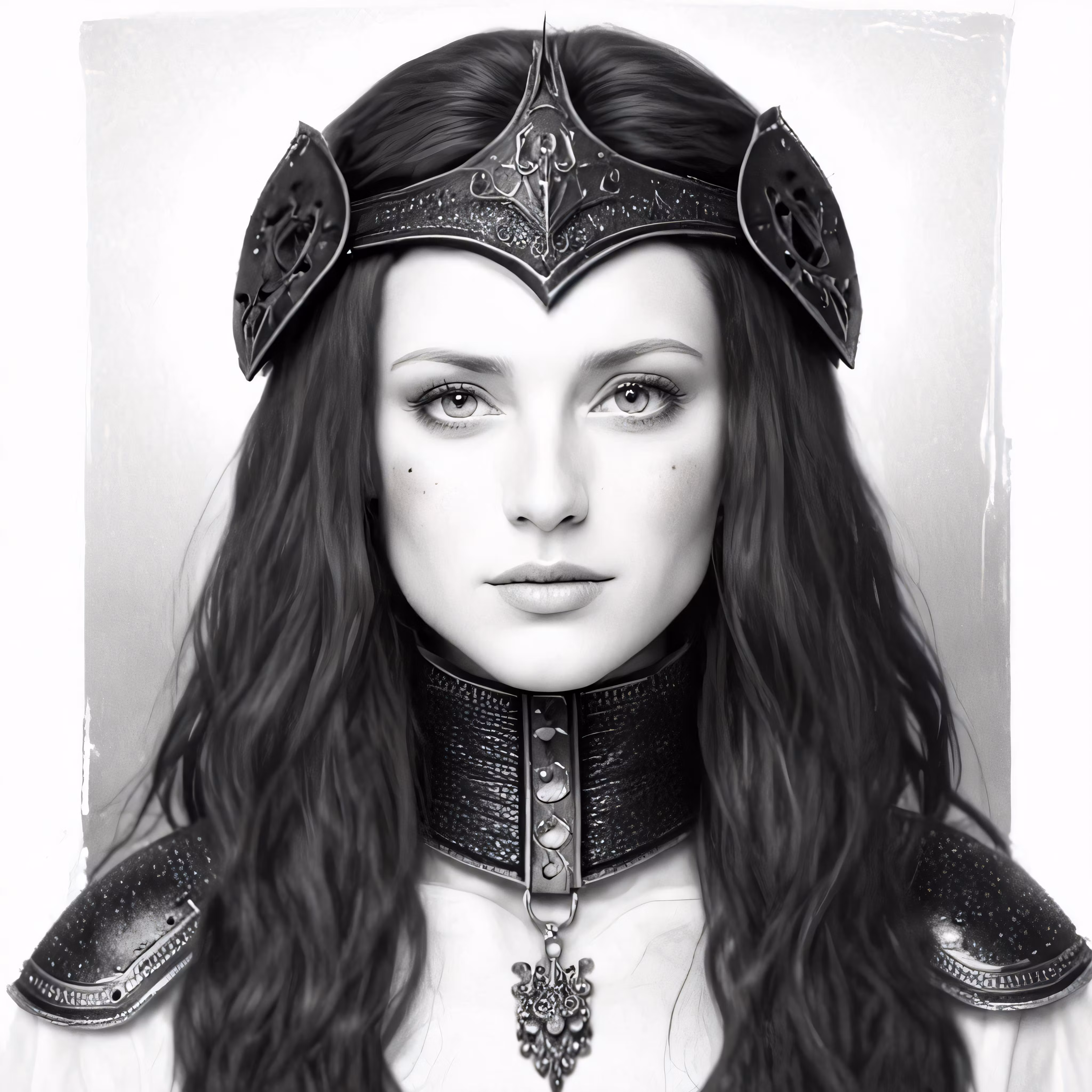 High resolution picture, free to use, a drawing of a woman in a knight outfit