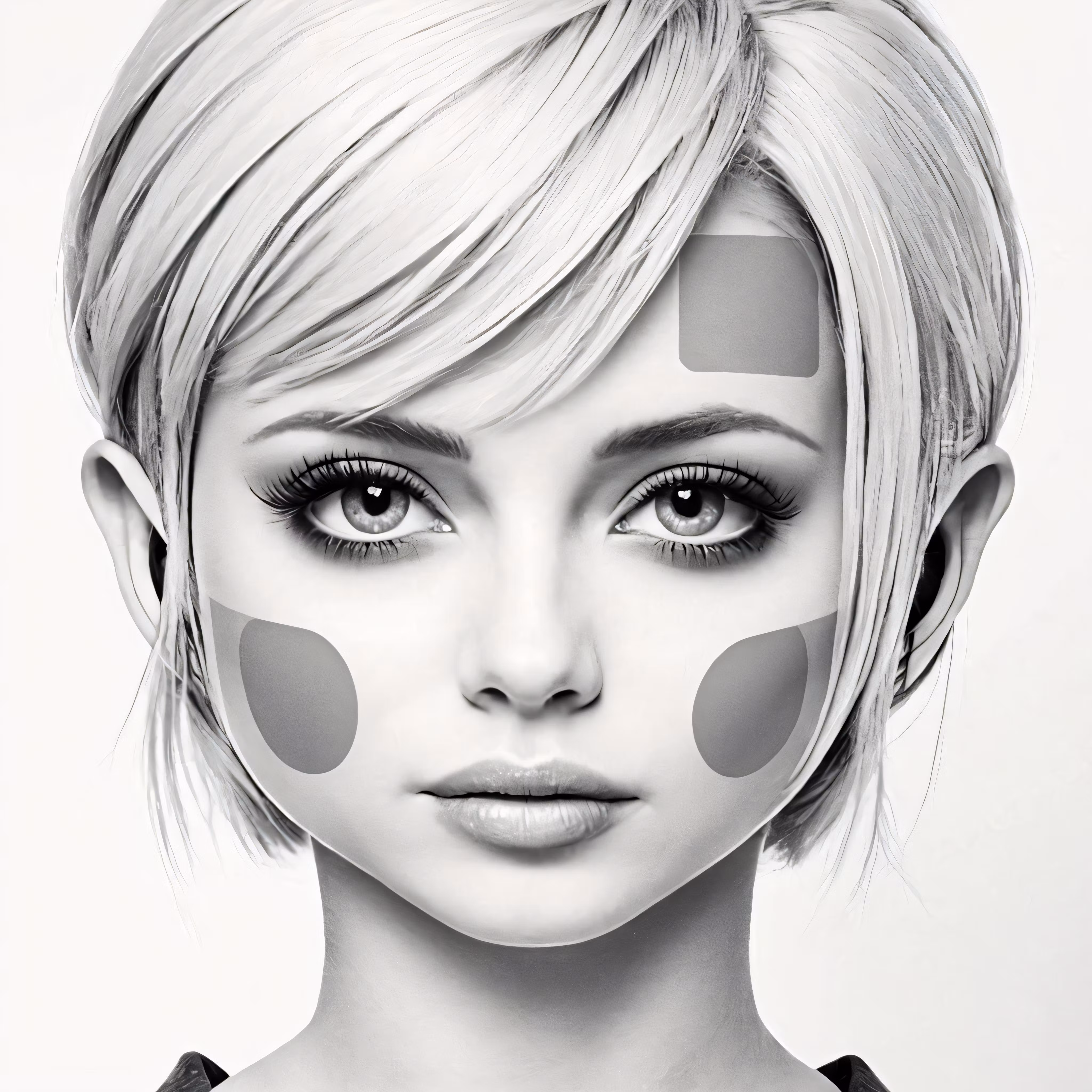 High resolution picture, free to use, a drawing of a woman with circles on her face