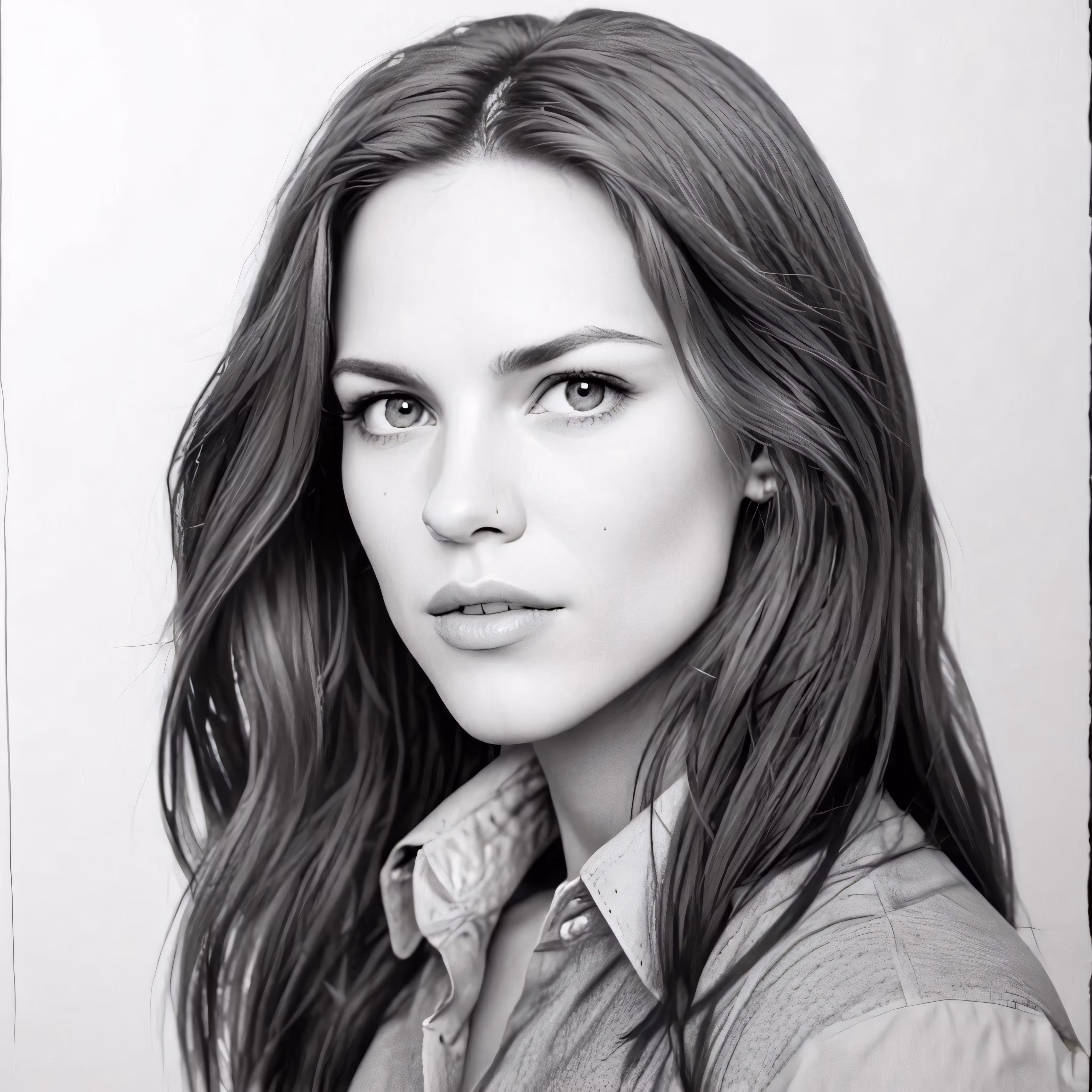 High resolution picture, free to use, a drawing of a woman with dark hair