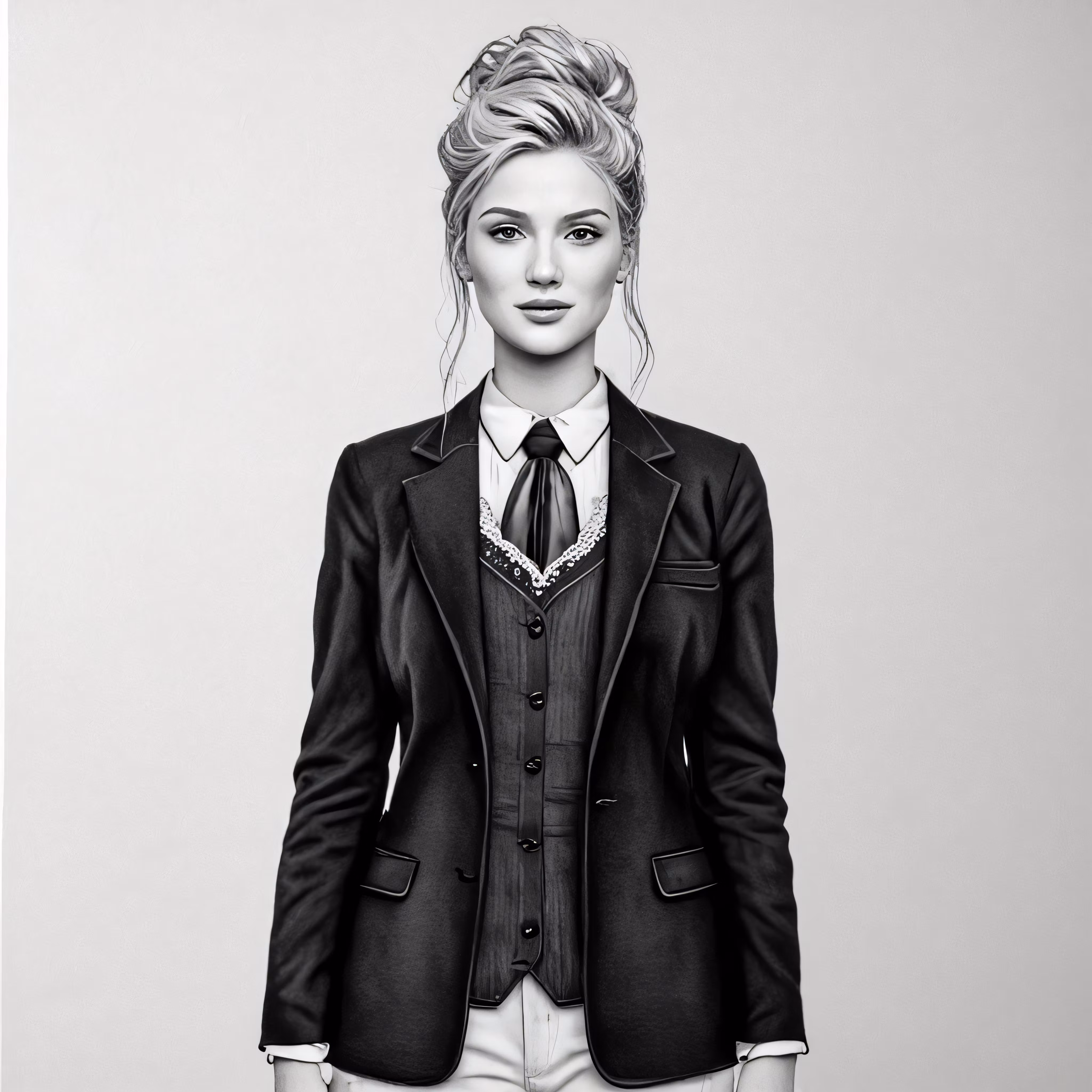 High resolution picture, free to use, a drawing of a woman with her hair in a bun