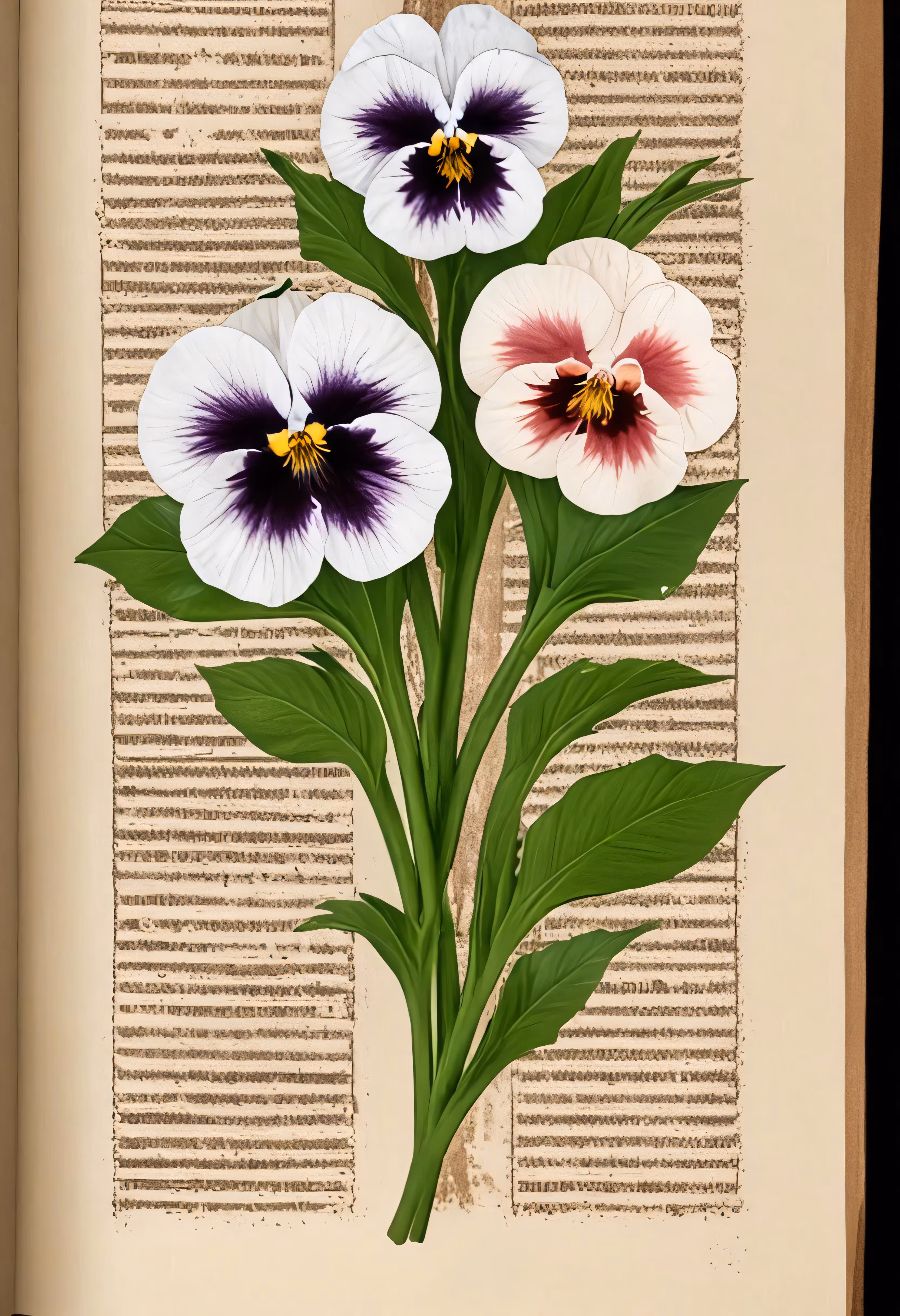 High resolution picture, free to use, a drawing of three flowered leaves with the petals open