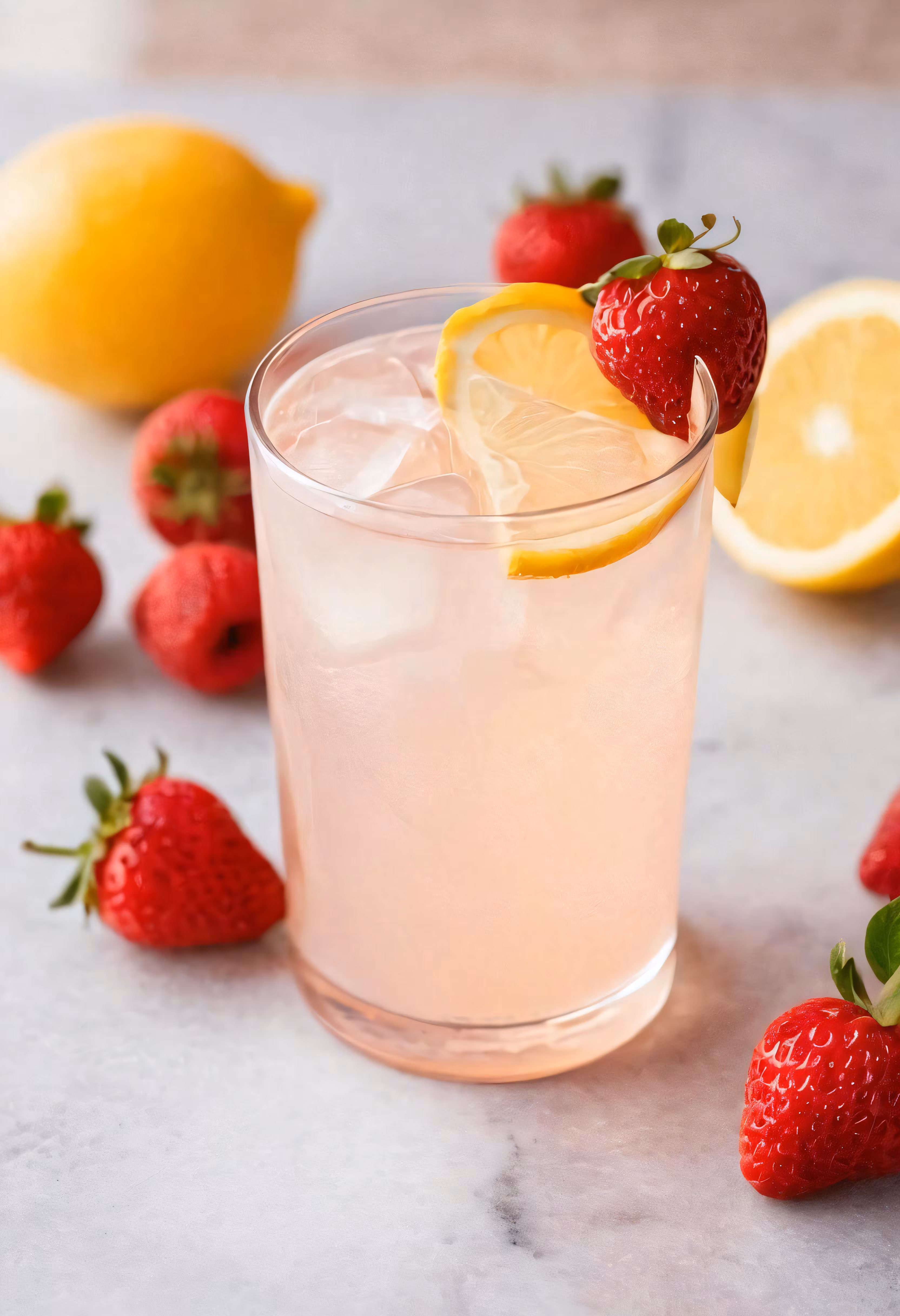 High resolution picture, free to use, a drink on the table with lemons and strawberries