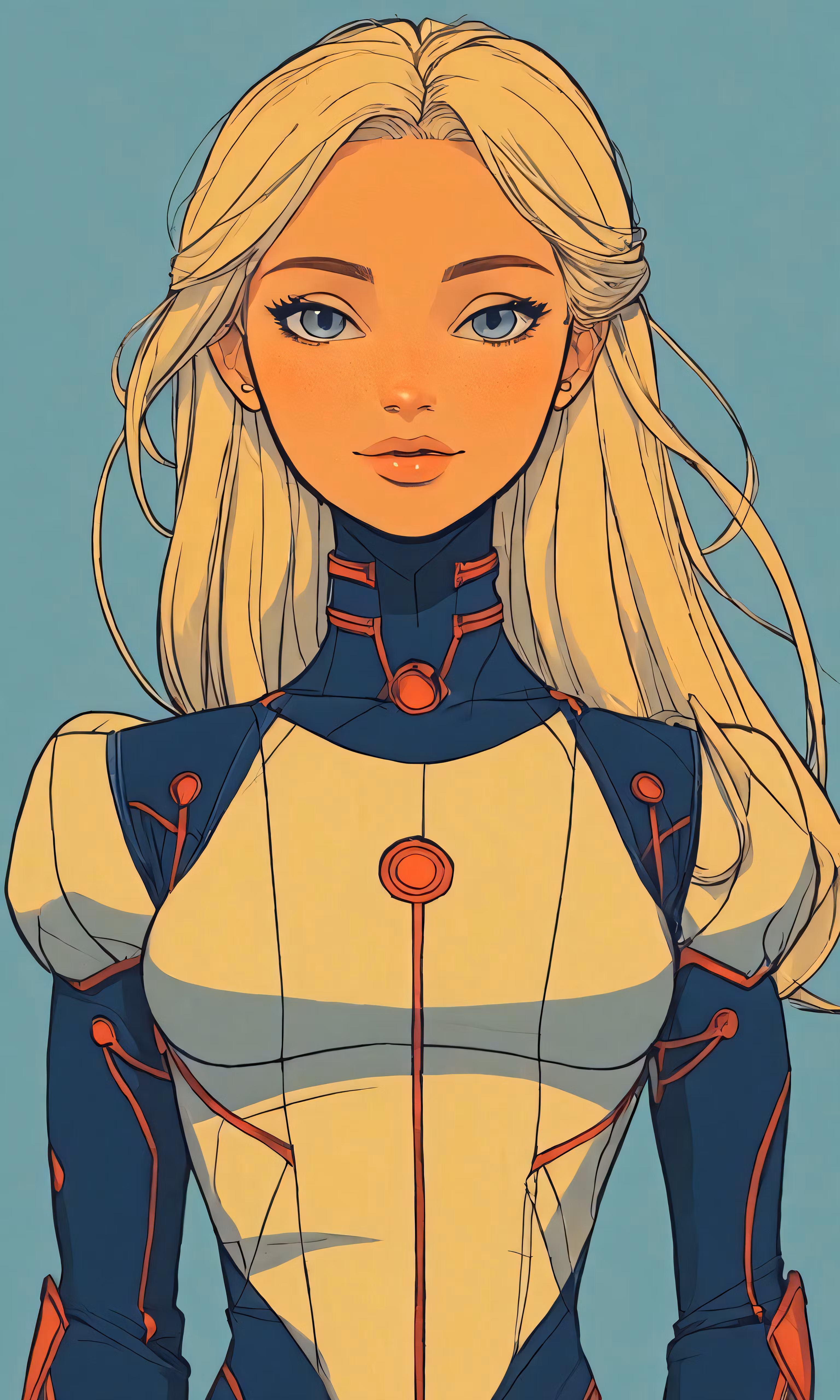 High resolution picture, free to use, a female character with blonde hair and blue eyes wearing an armor