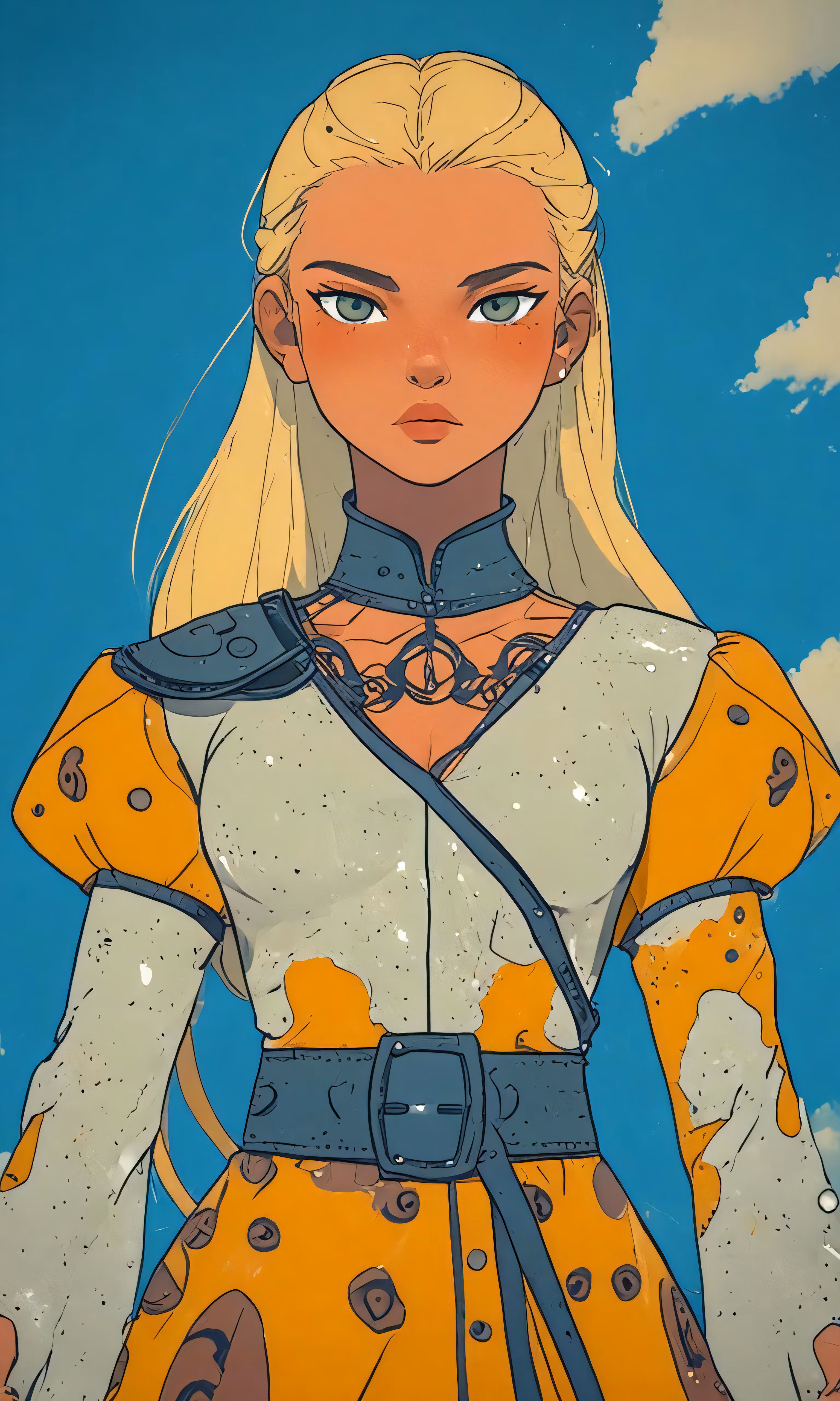 High resolution picture, free to use, a female in a yellow and white dress with long blonde hair