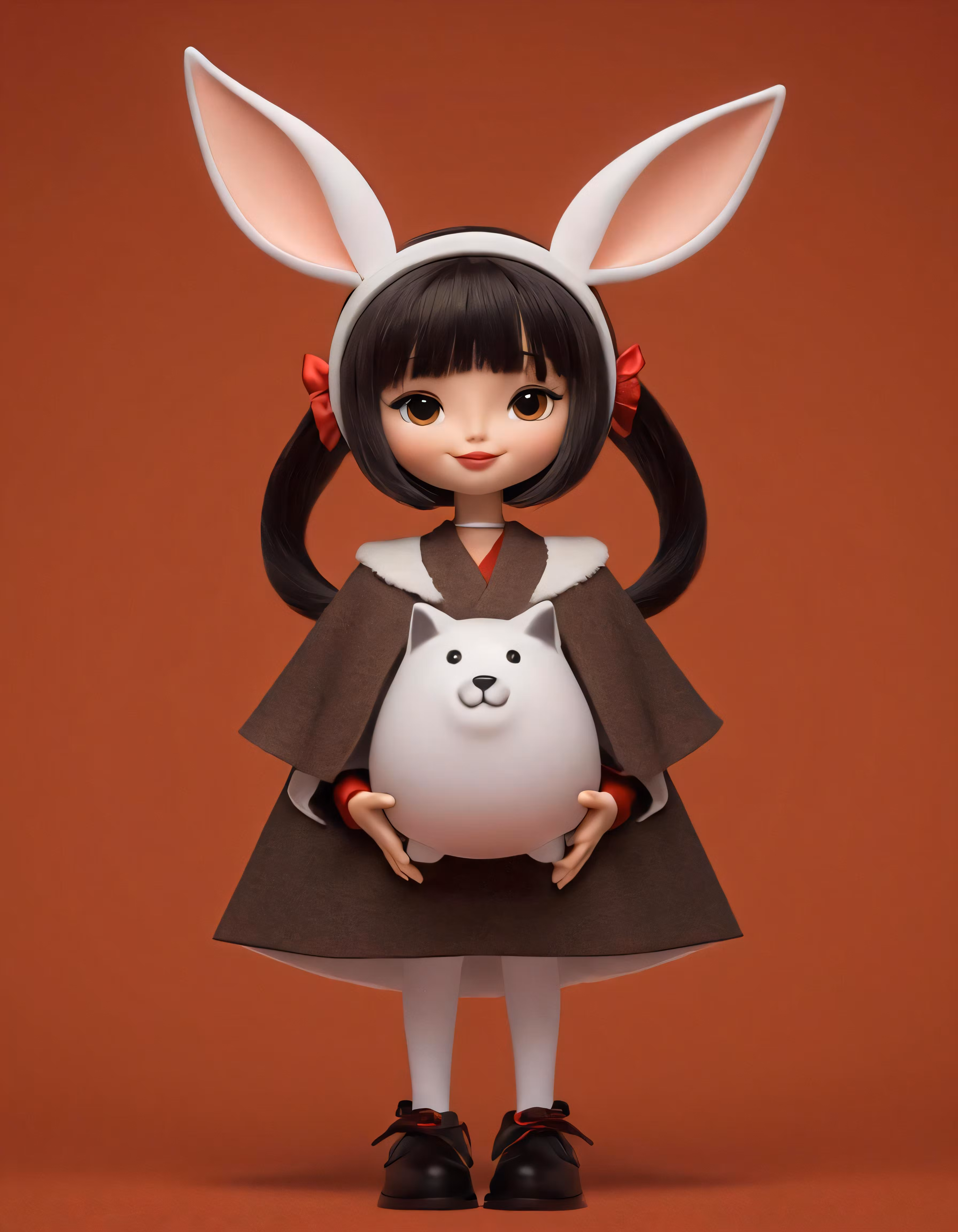 High resolution picture, free to use, a figurine of a young girl holding a white bunny in her hands