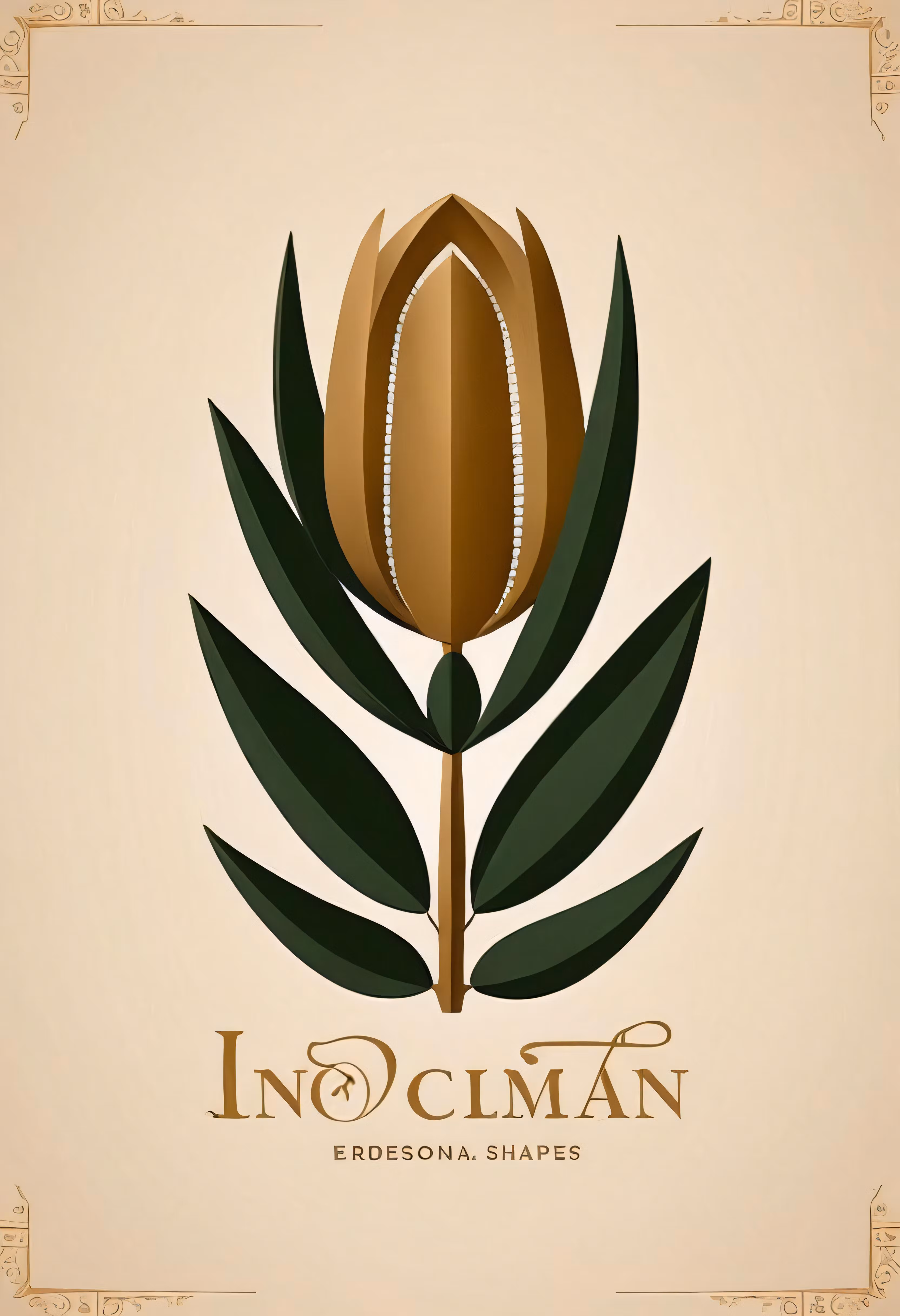 High resolution picture, free to use, a flower with leaves on top is shown in an art nouveau style