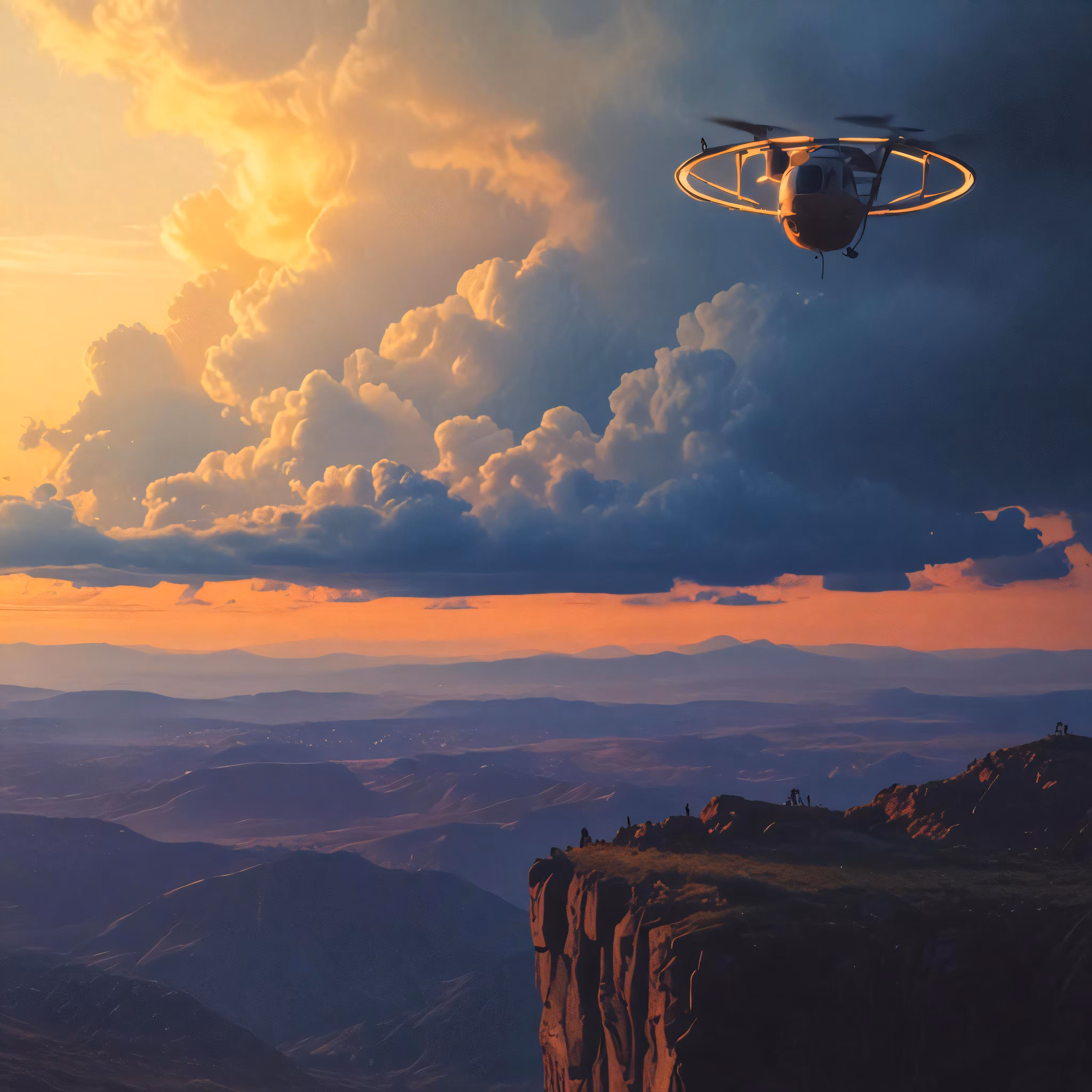 High resolution picture, free to use, a flying object that is in the air over some mountains