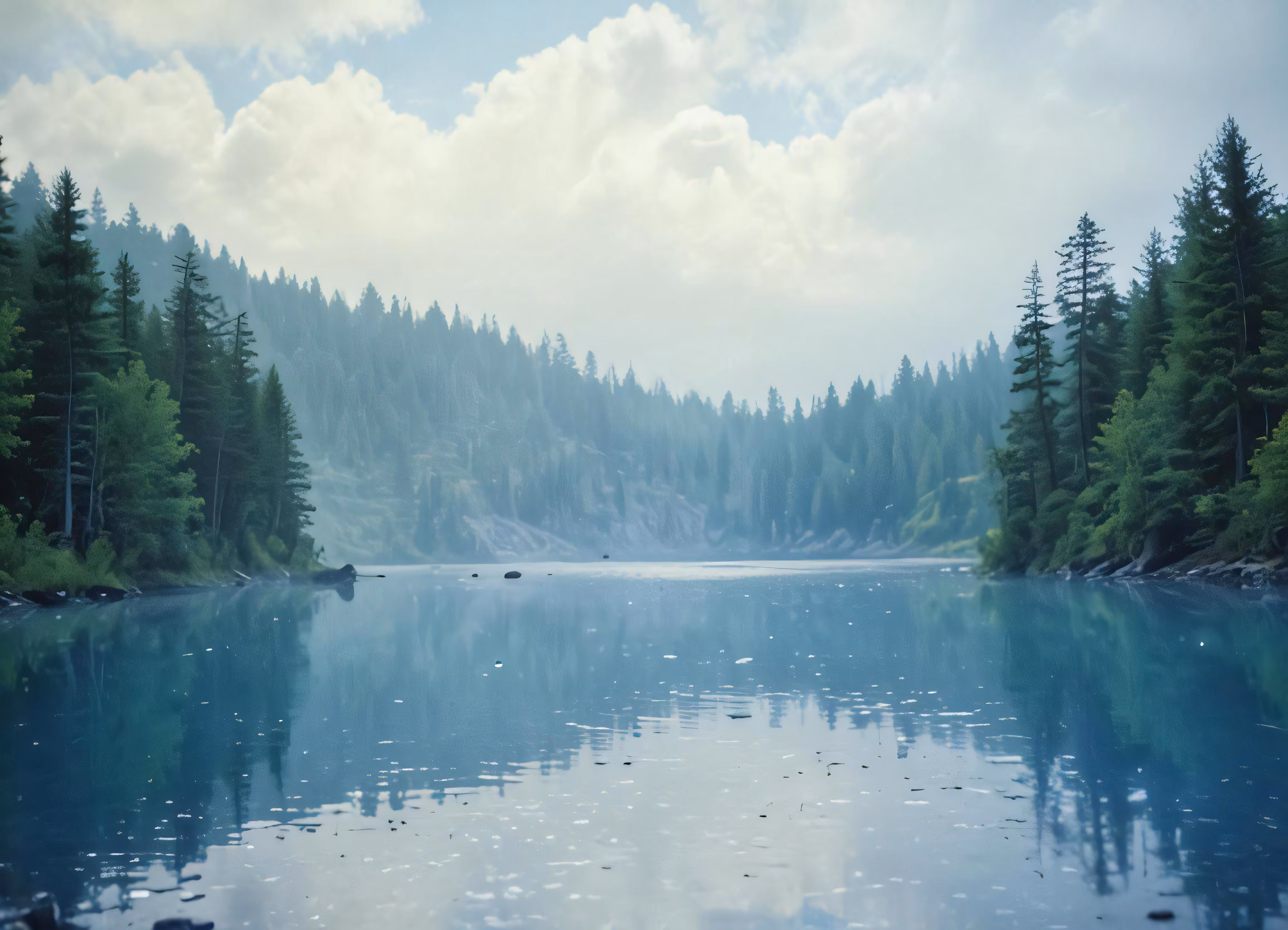 High resolution picture, free to use, a forest filled with lots of trees reflected in a still water river