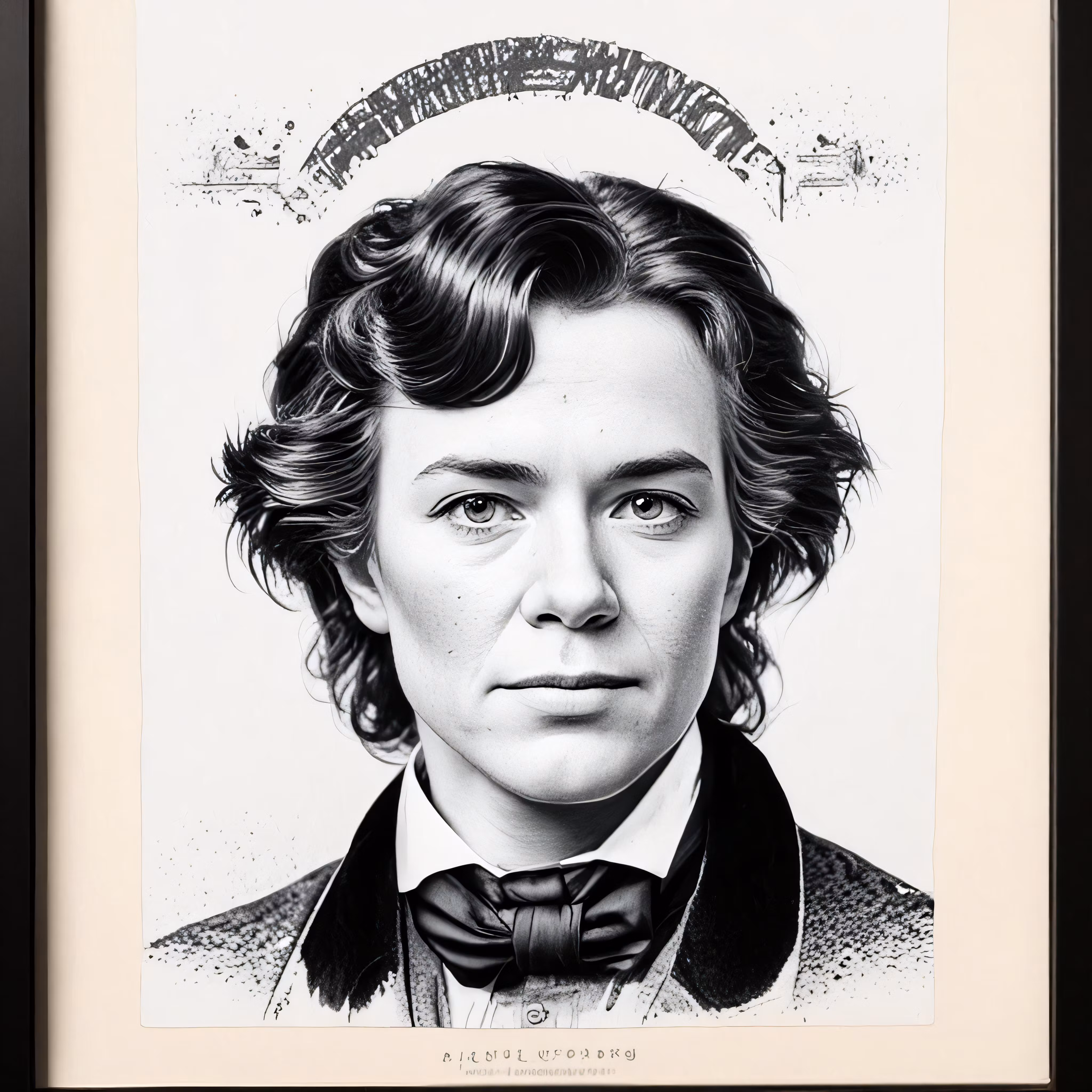 High resolution picture, free to use, a framed black and white drawing of an older woman