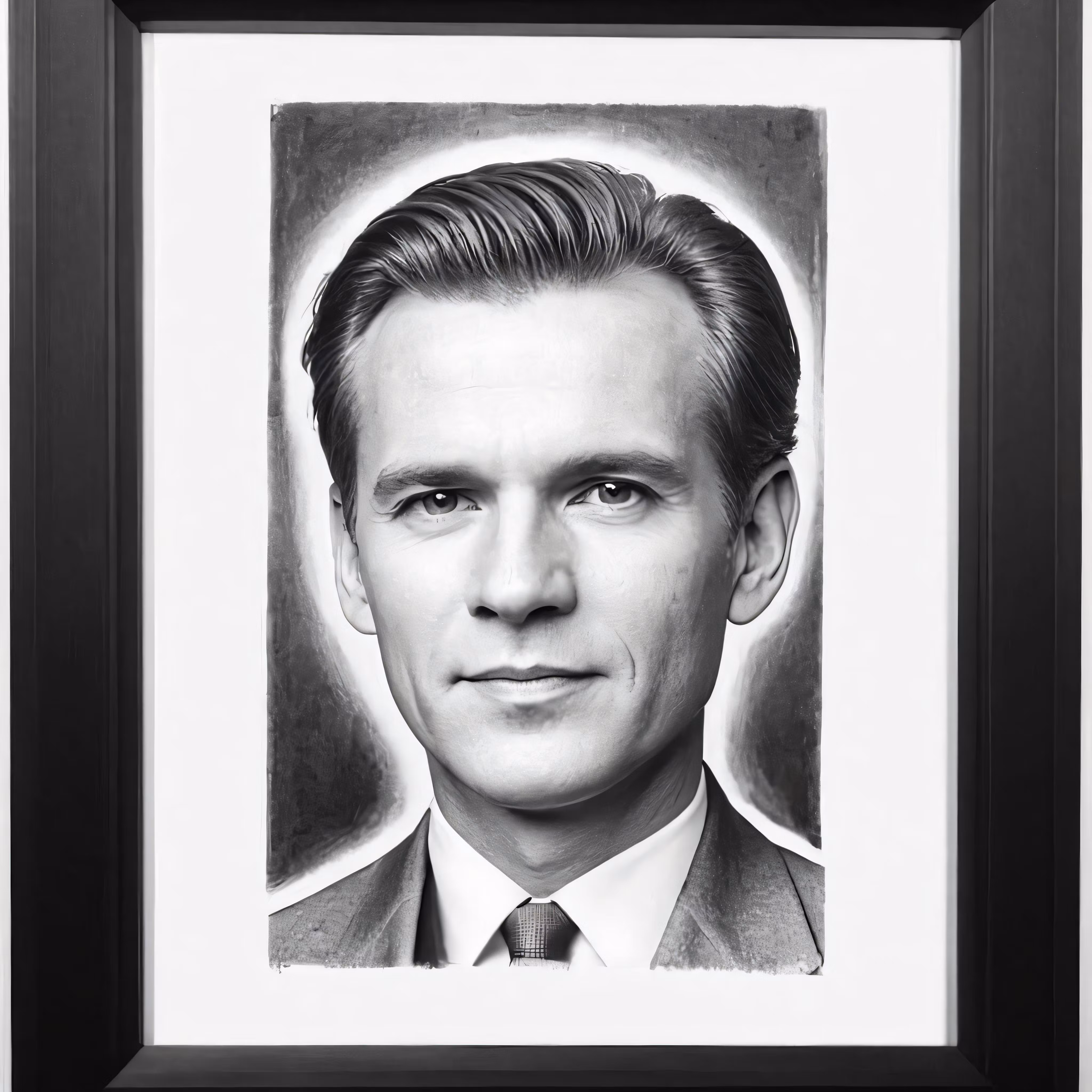 High resolution picture, free to use, a framed portrait of a man wearing a suit and tie