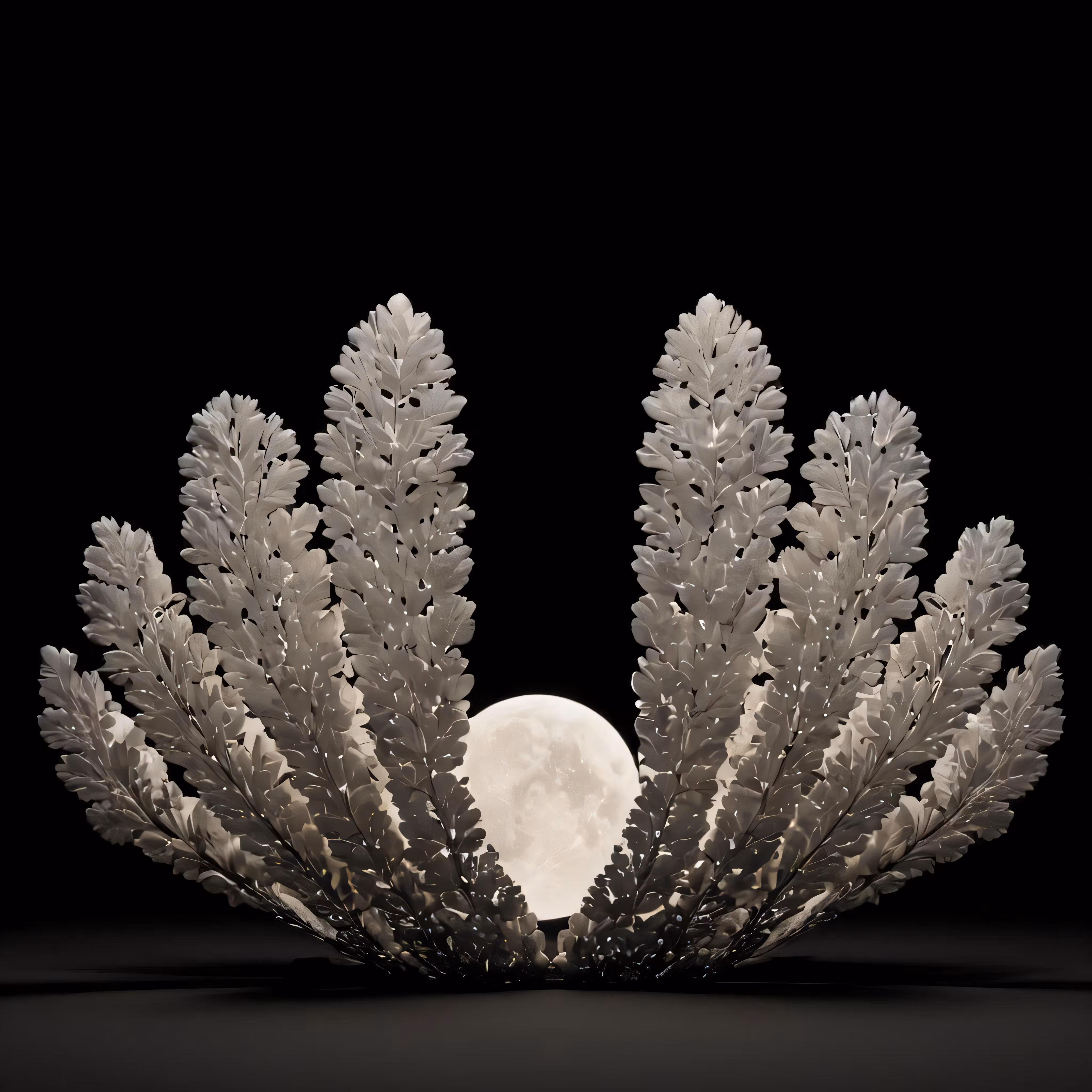 High resolution picture, free to use, a full moon is behind some pretty, light   up, coral like trees