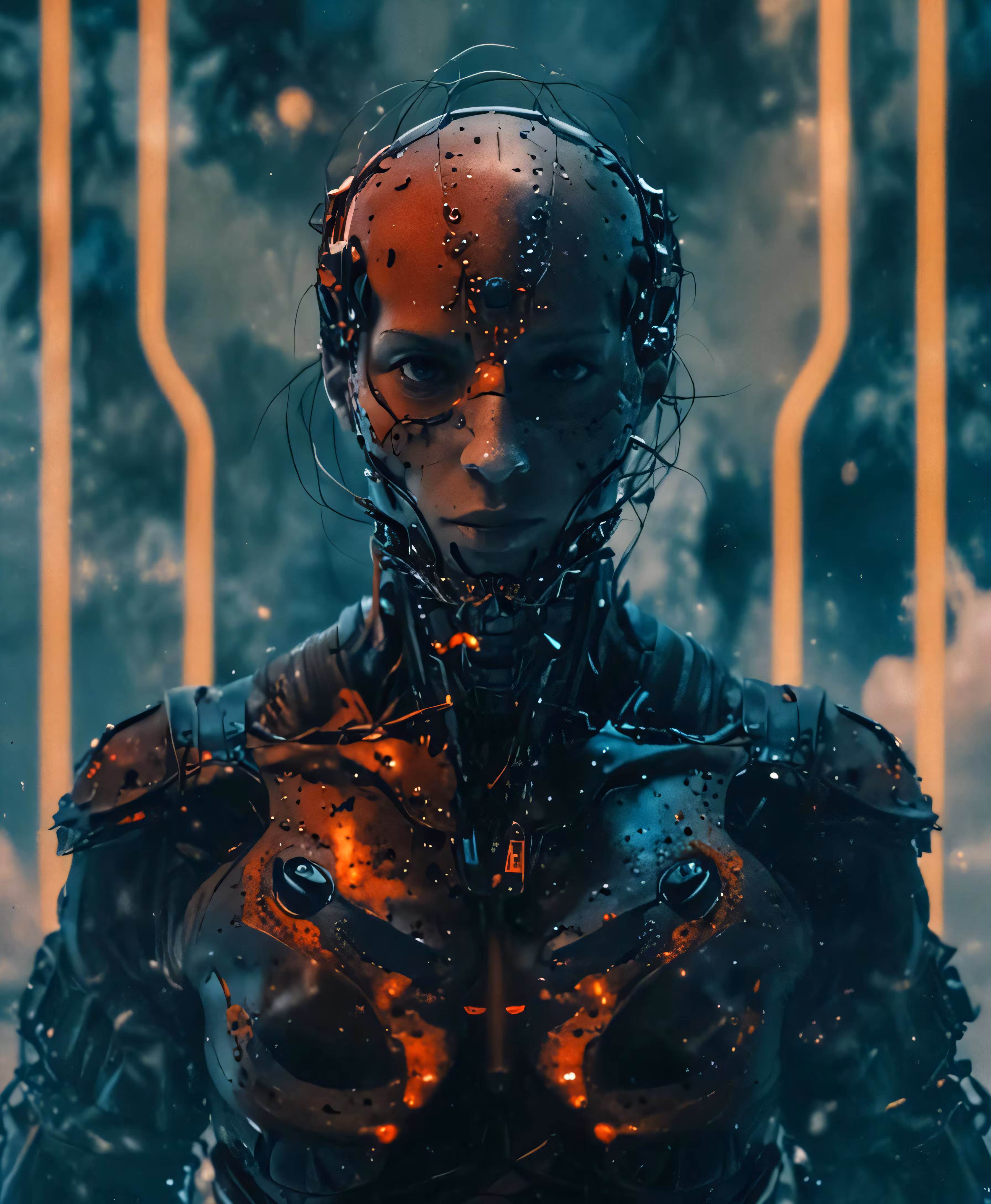 High resolution picture, free to use, a futuristic man in a futuristic suit with fiery, black accents