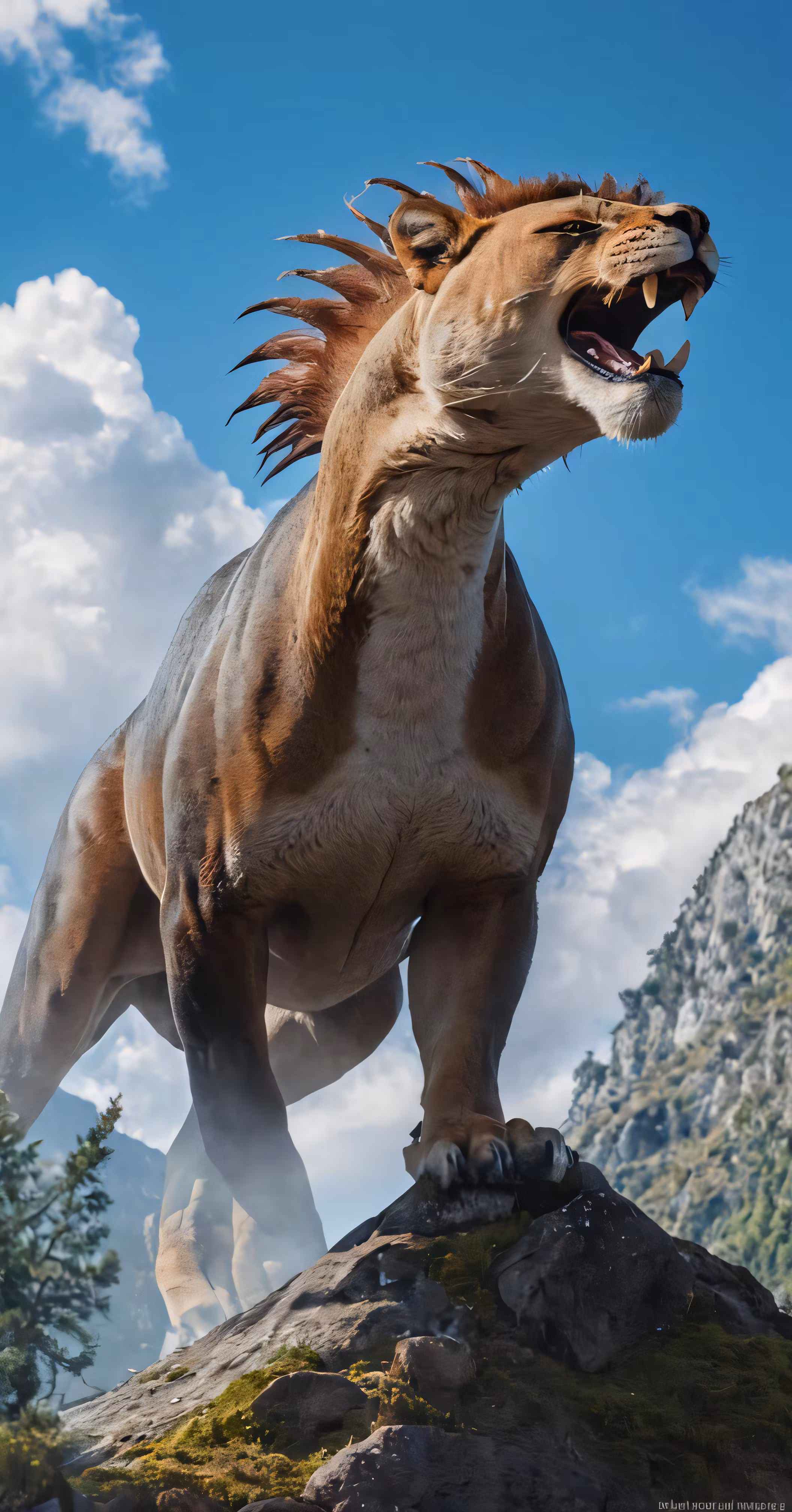 High resolution picture, free to use, a giant dinosaur is standing on a rock