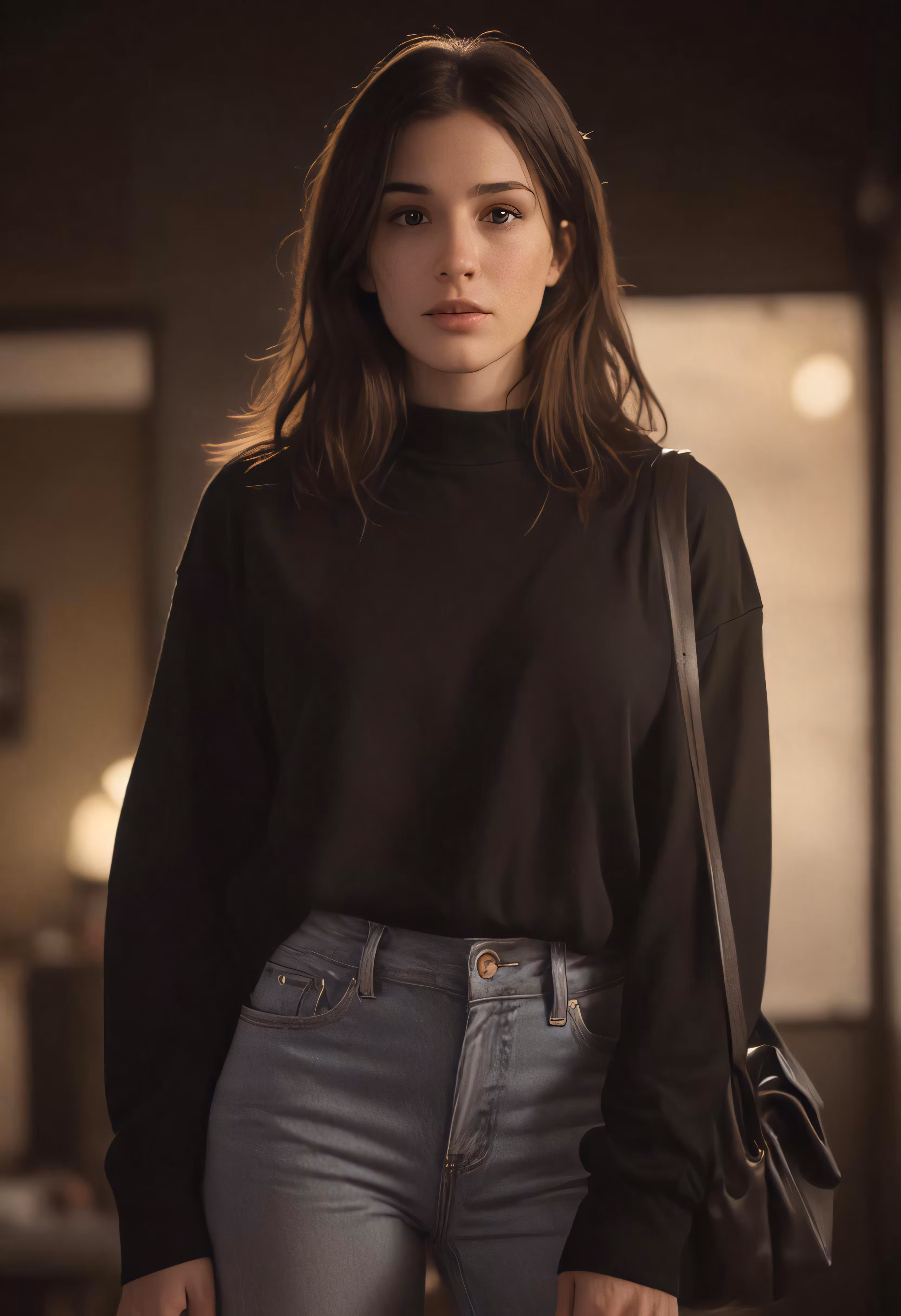 High resolution picture, free to use, a girl in black shirt and grey jeans