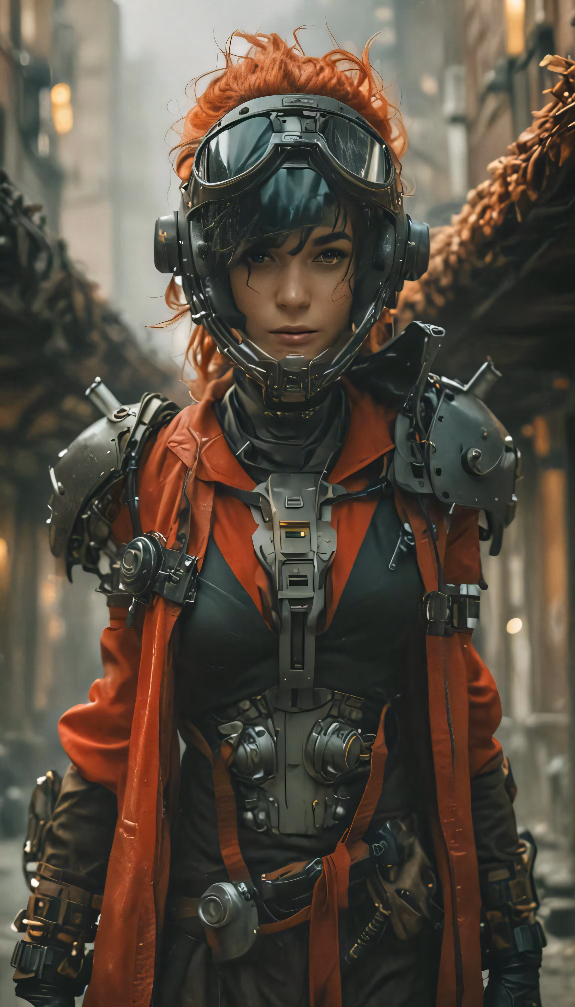 High resolution picture, free to use, a girl in futuristic attire is looking to the left