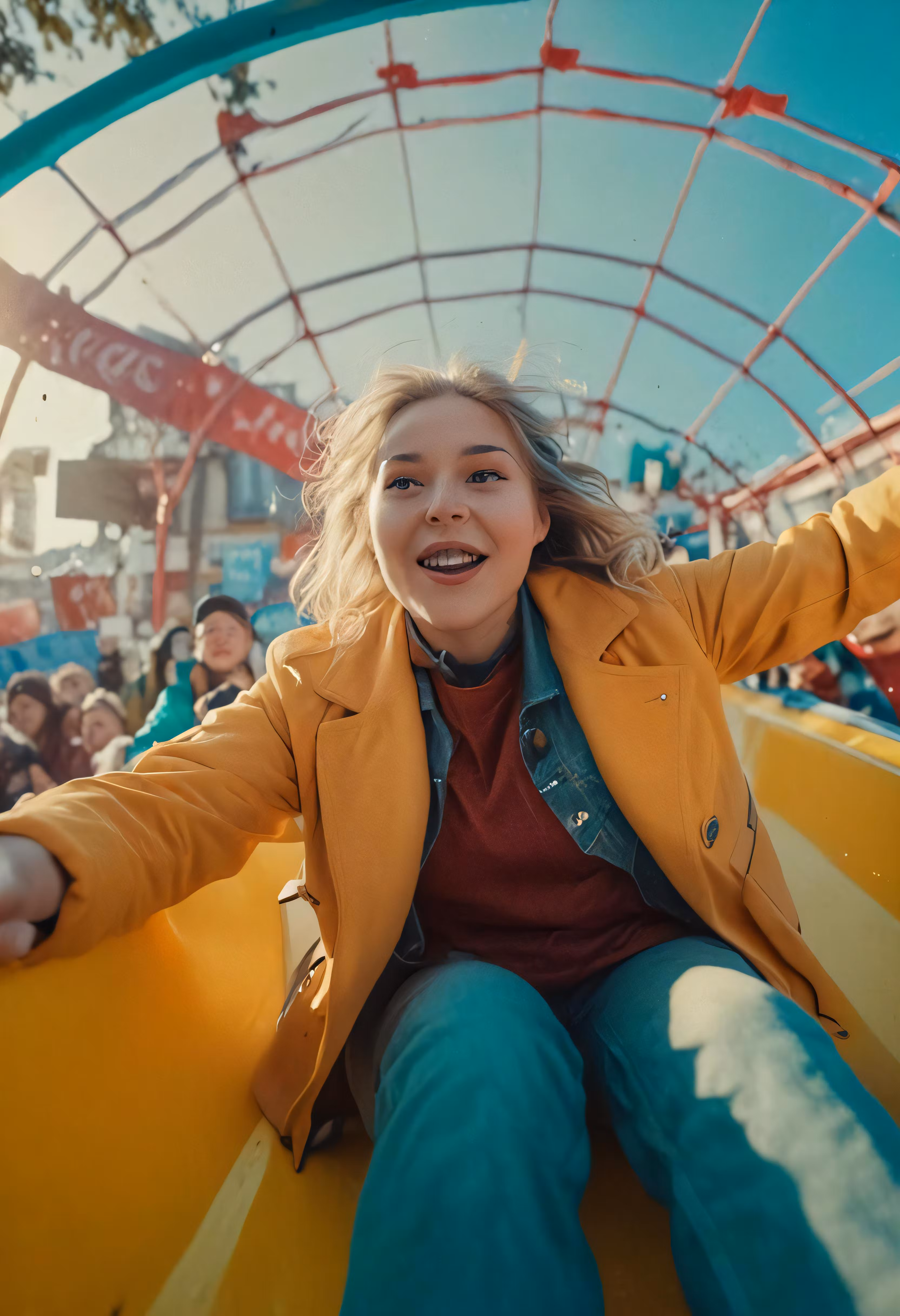 High resolution picture, free to use, a girl is in a carnival ride at the park