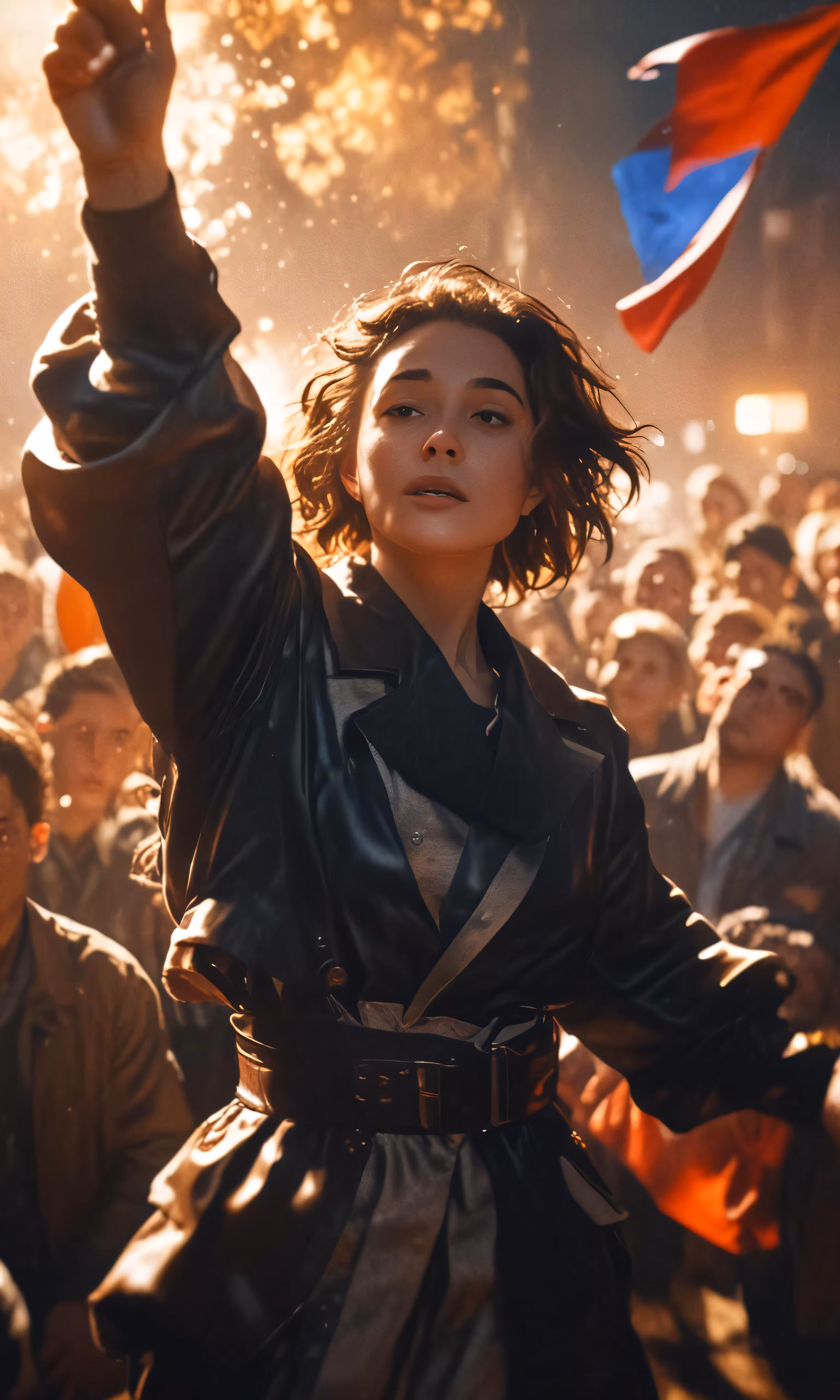 High resolution picture, free to use, a girl stands on the side of a street as a crowd looks on