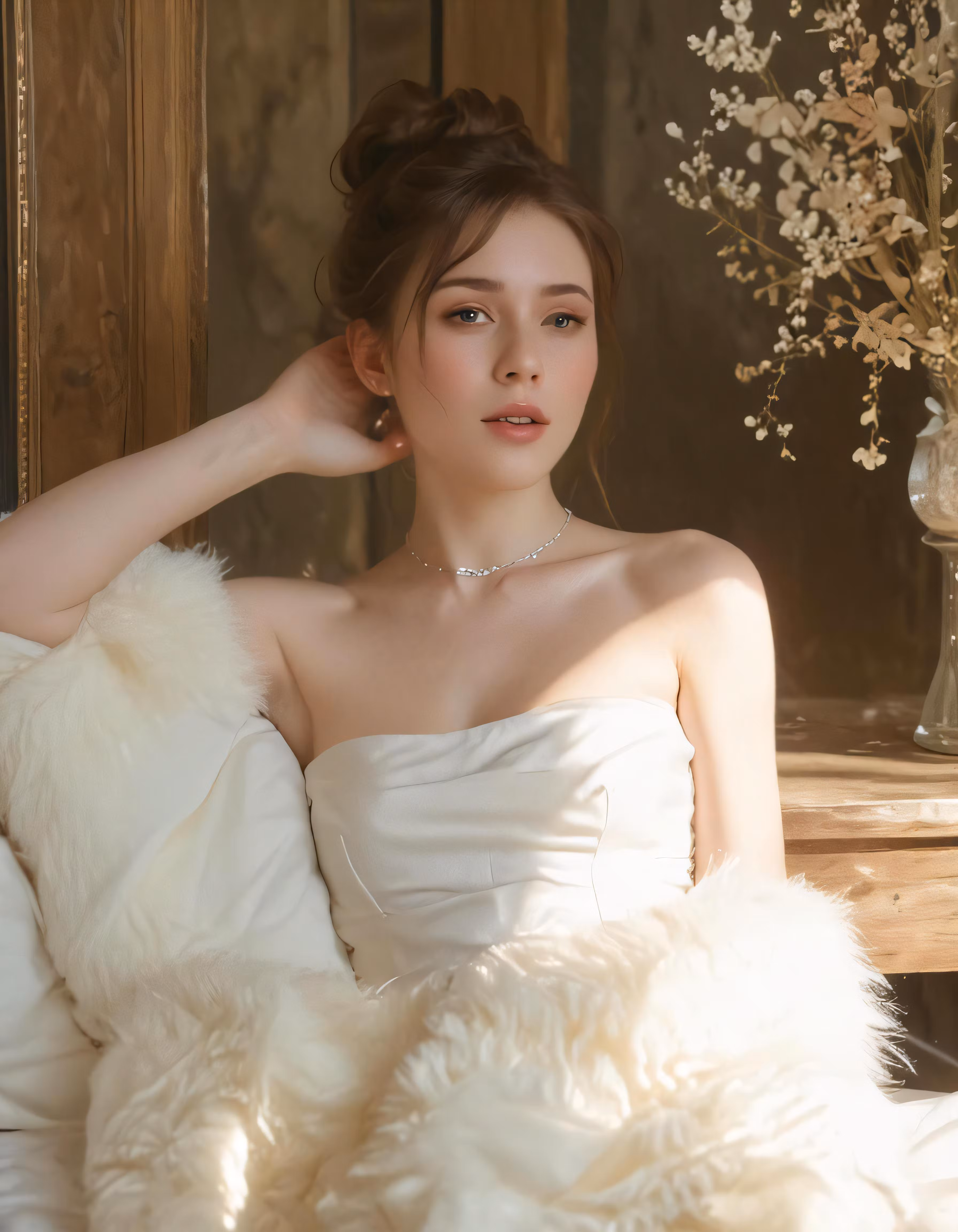 High resolution picture, free to use, a girl wearing a white dress sitting on a chair