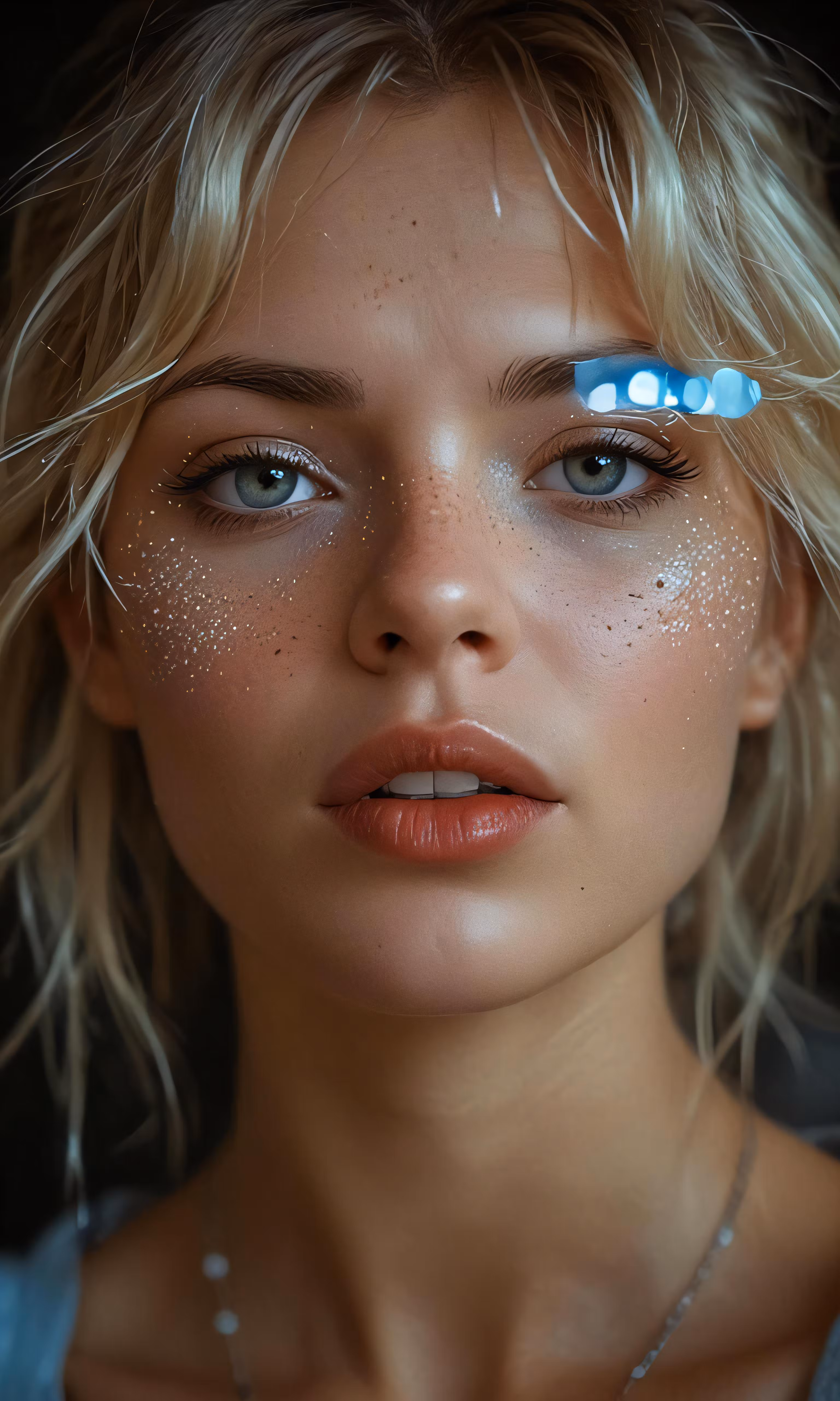 High resolution picture, free to use, a girl with a white top and sparkle in her eyes