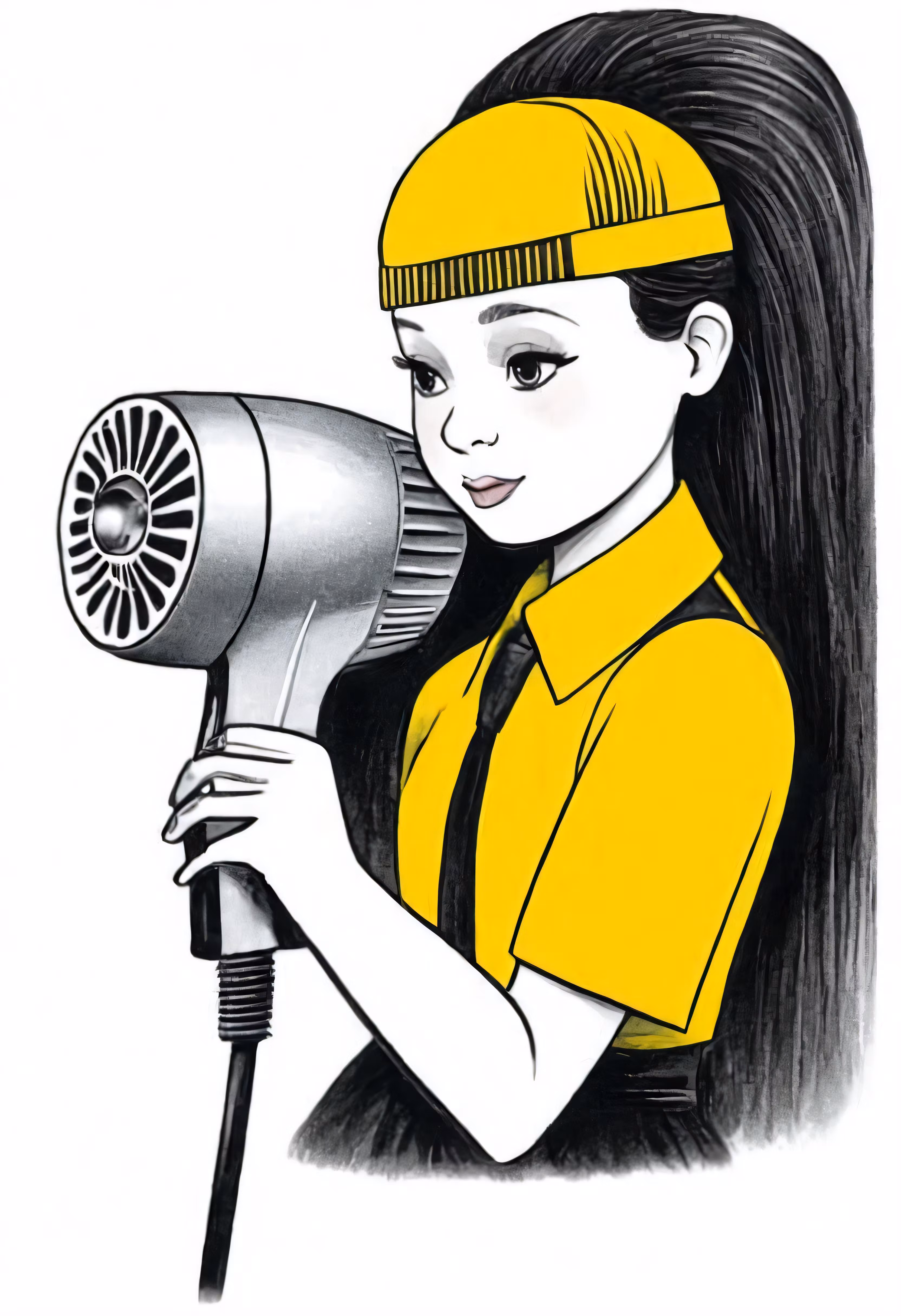 High resolution picture, free to use, a girl with an electric hairdryer drawing