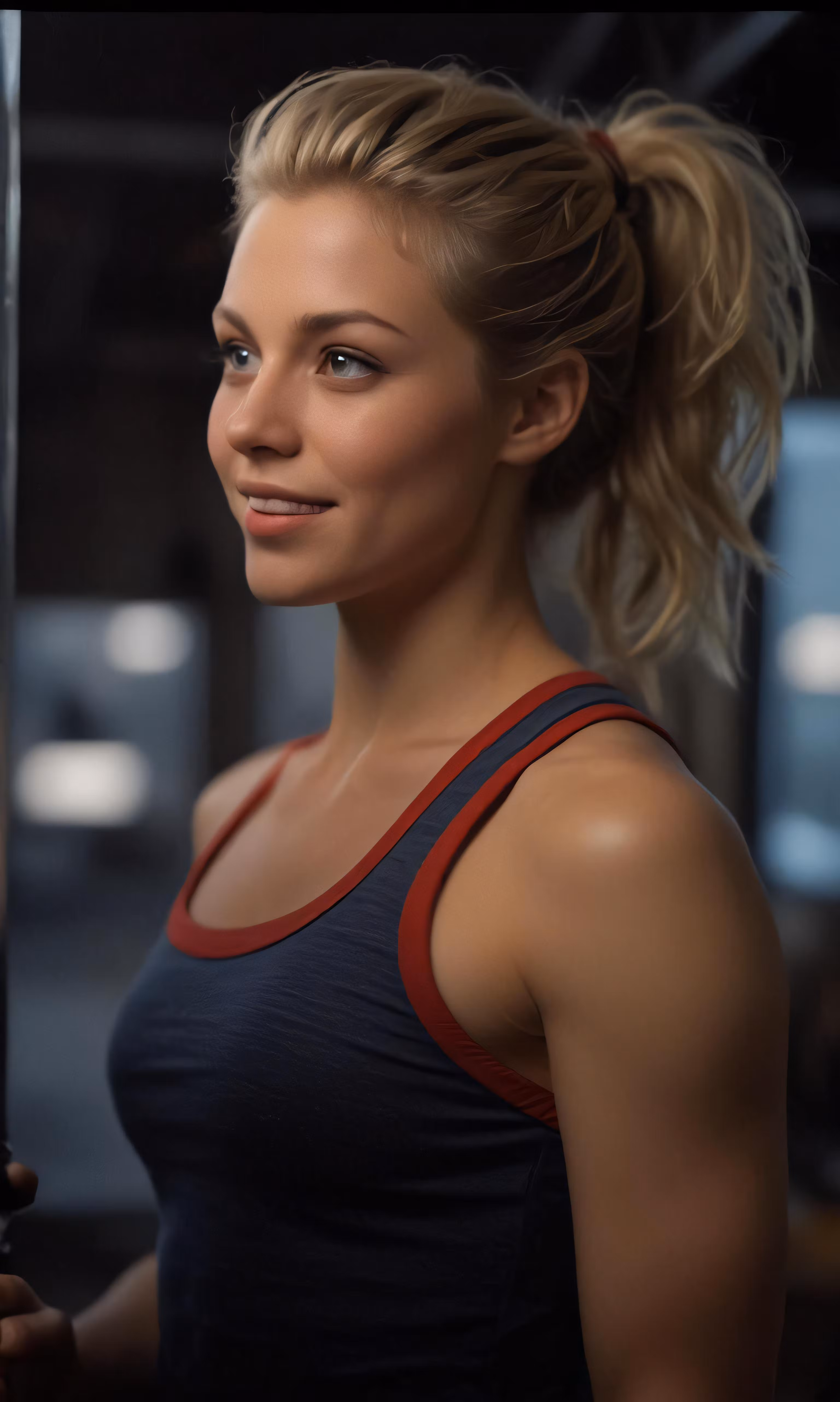 High resolution picture, free to use, a girl with her hair pulled back stands in front of a pole