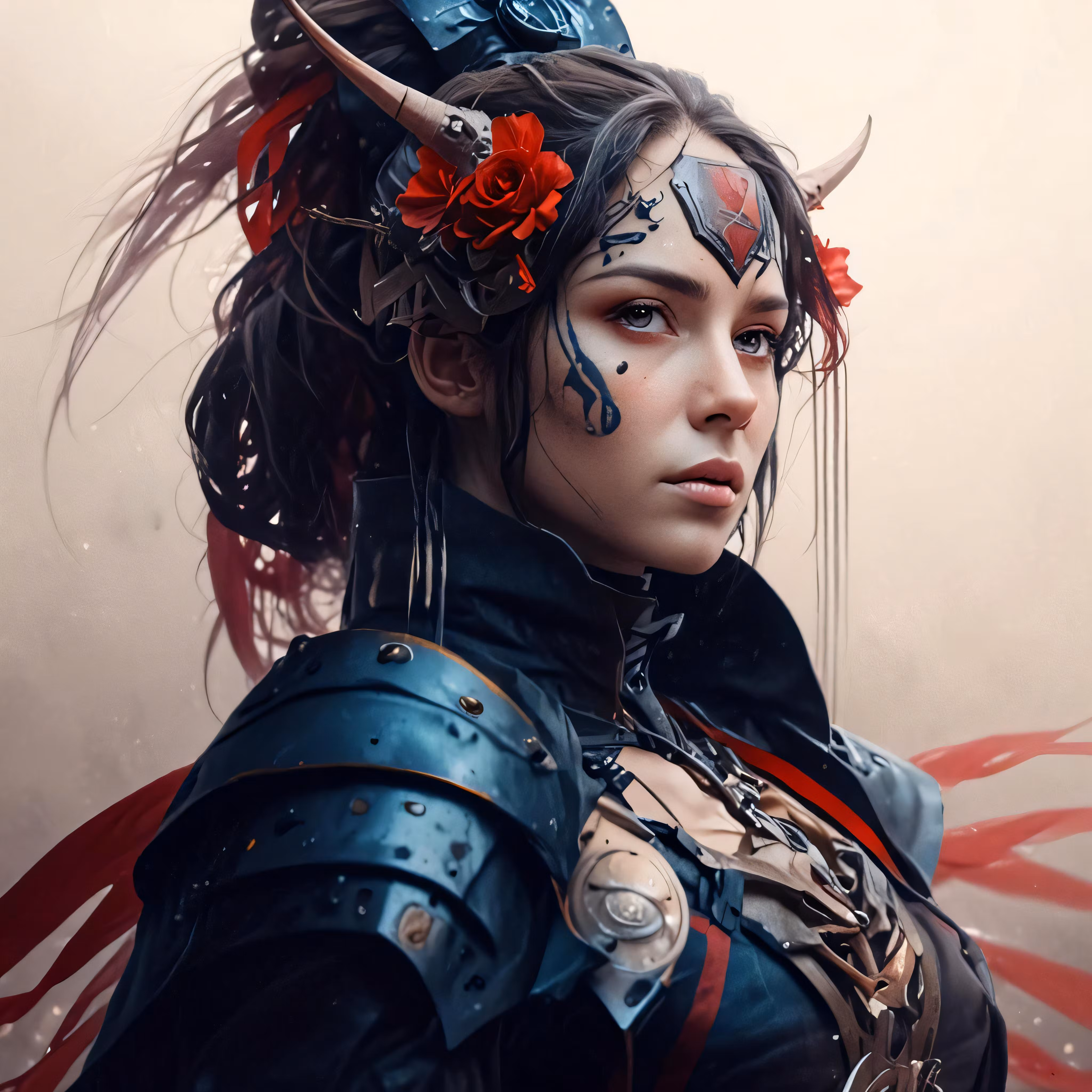 High resolution picture, free to use, a girl with painted face and horns holding scissors