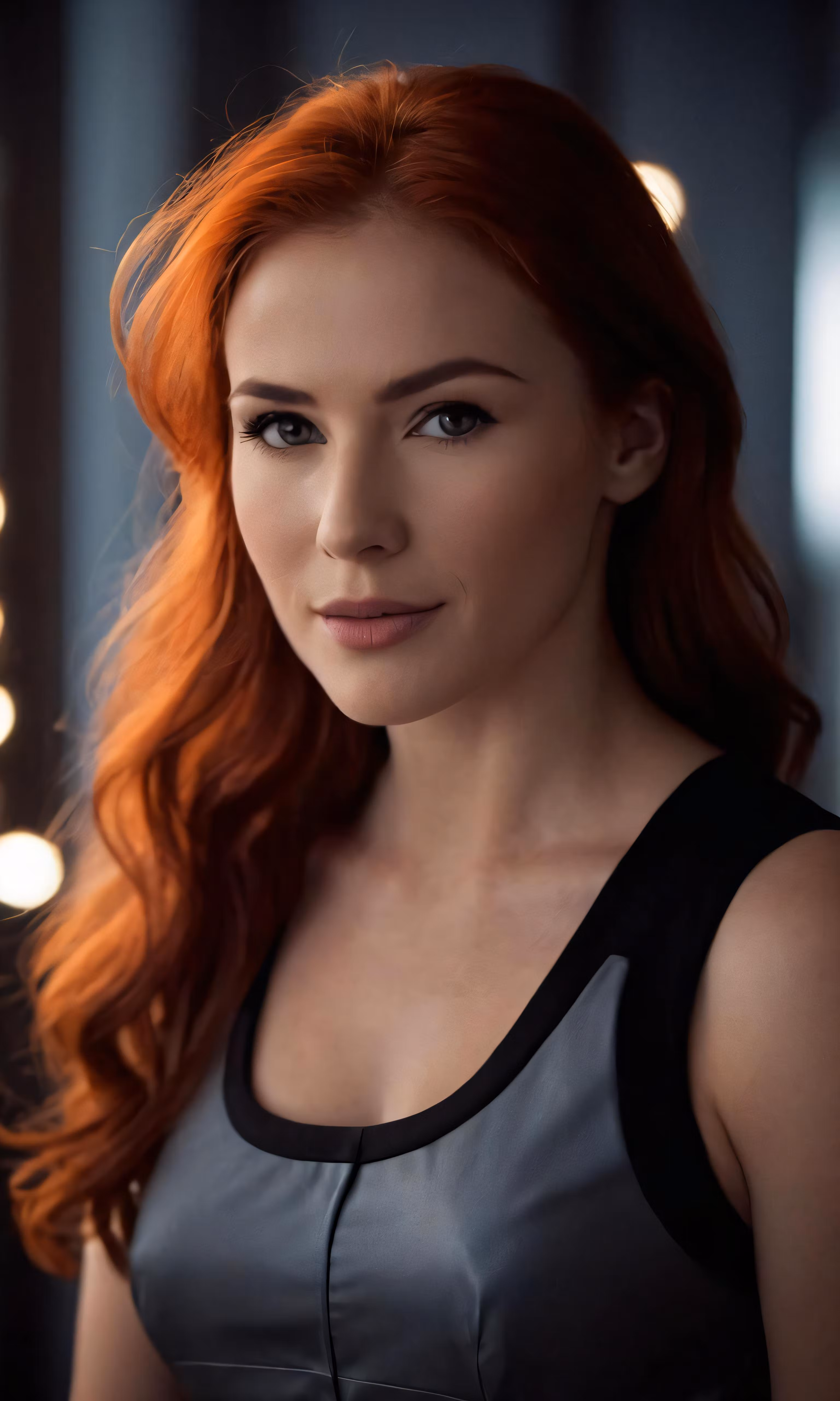 High resolution picture, free to use, a girl with red hair and wearing a leather dress