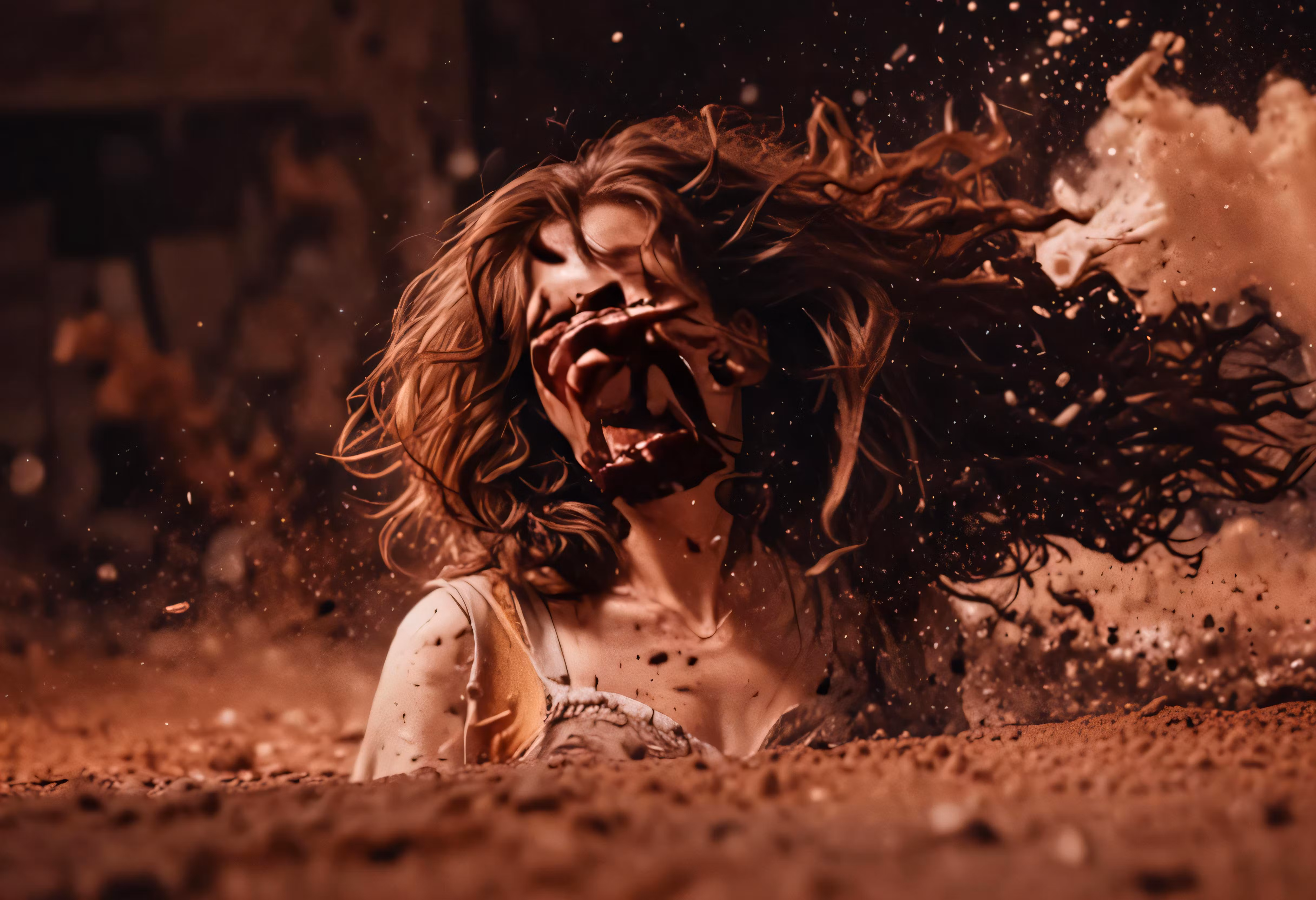 High resolution picture, free to use, a girl with very long hair and some rocks