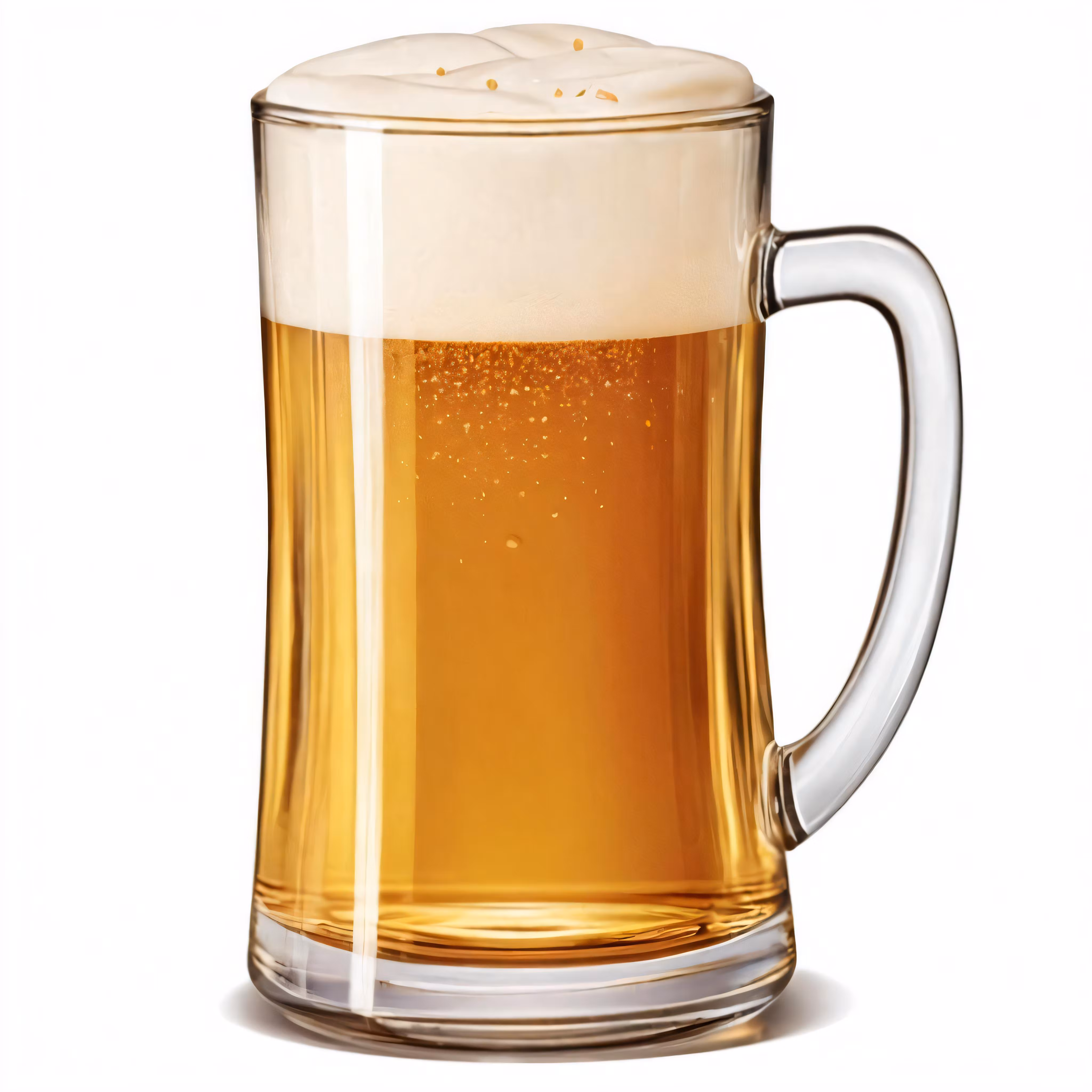 High resolution picture, free to use, a glass beer mug with a handle and no top