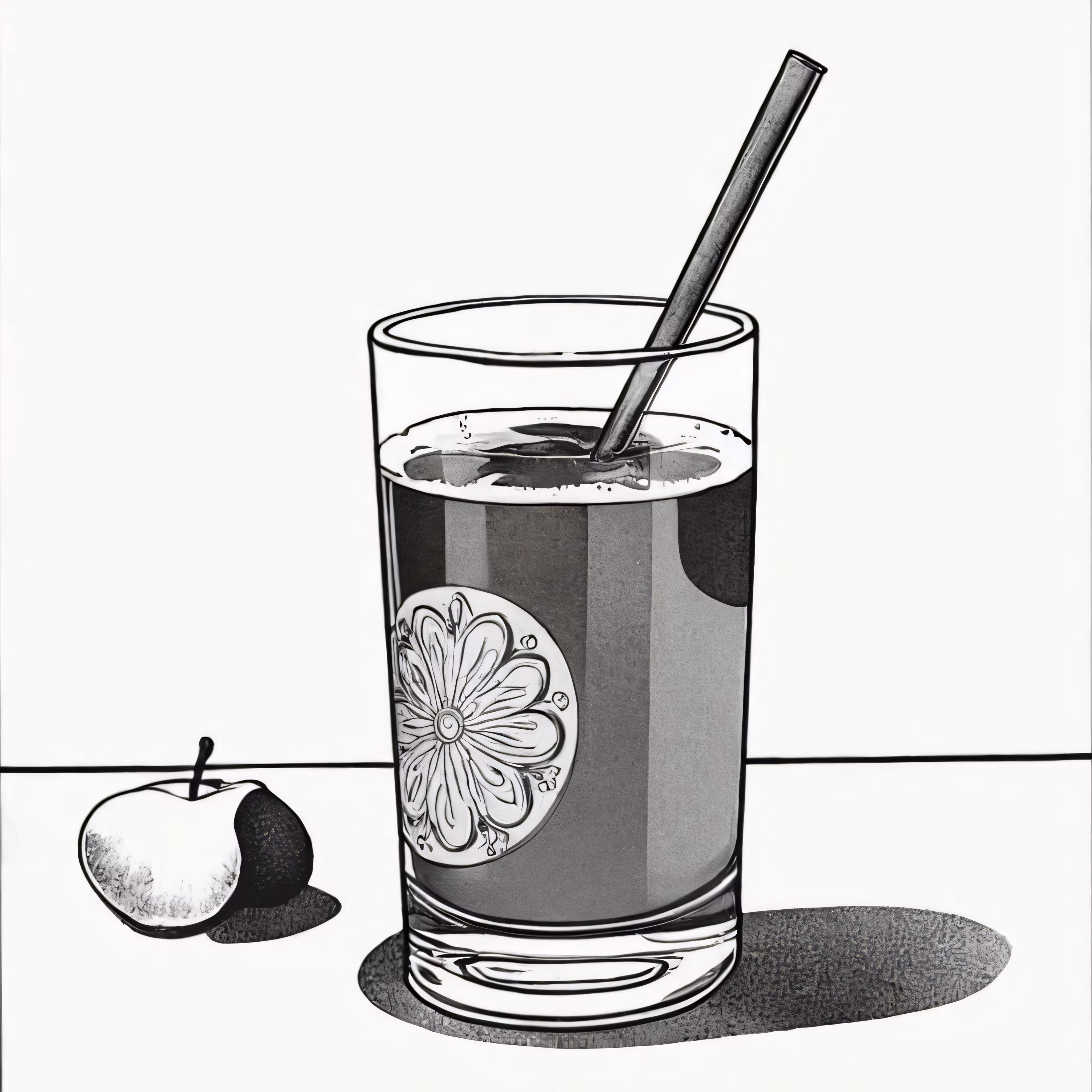 High resolution picture, free to use, a glass of ice tea with an apple in the background