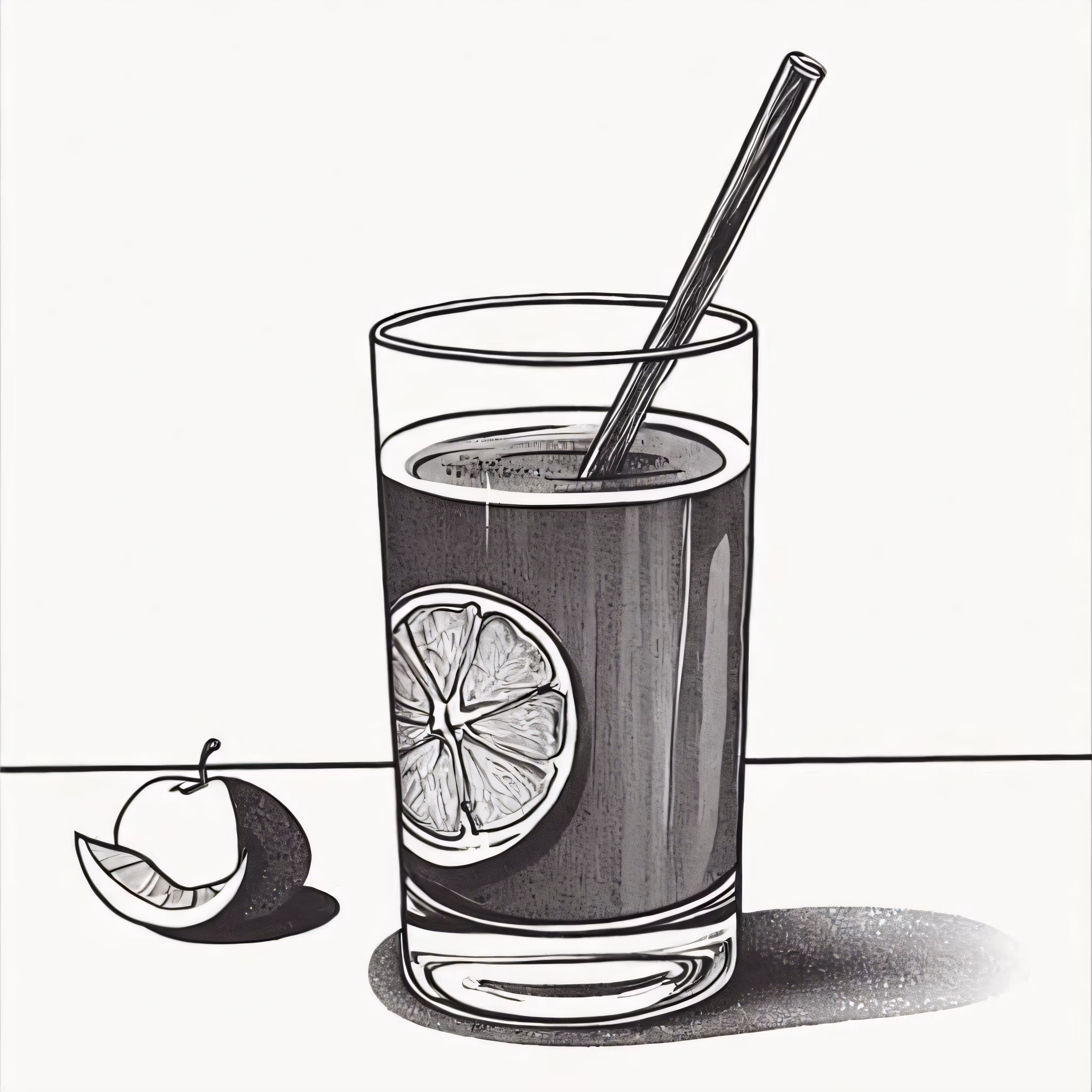 High resolution picture, free to use, a glass of liquid with an orange and a spoon