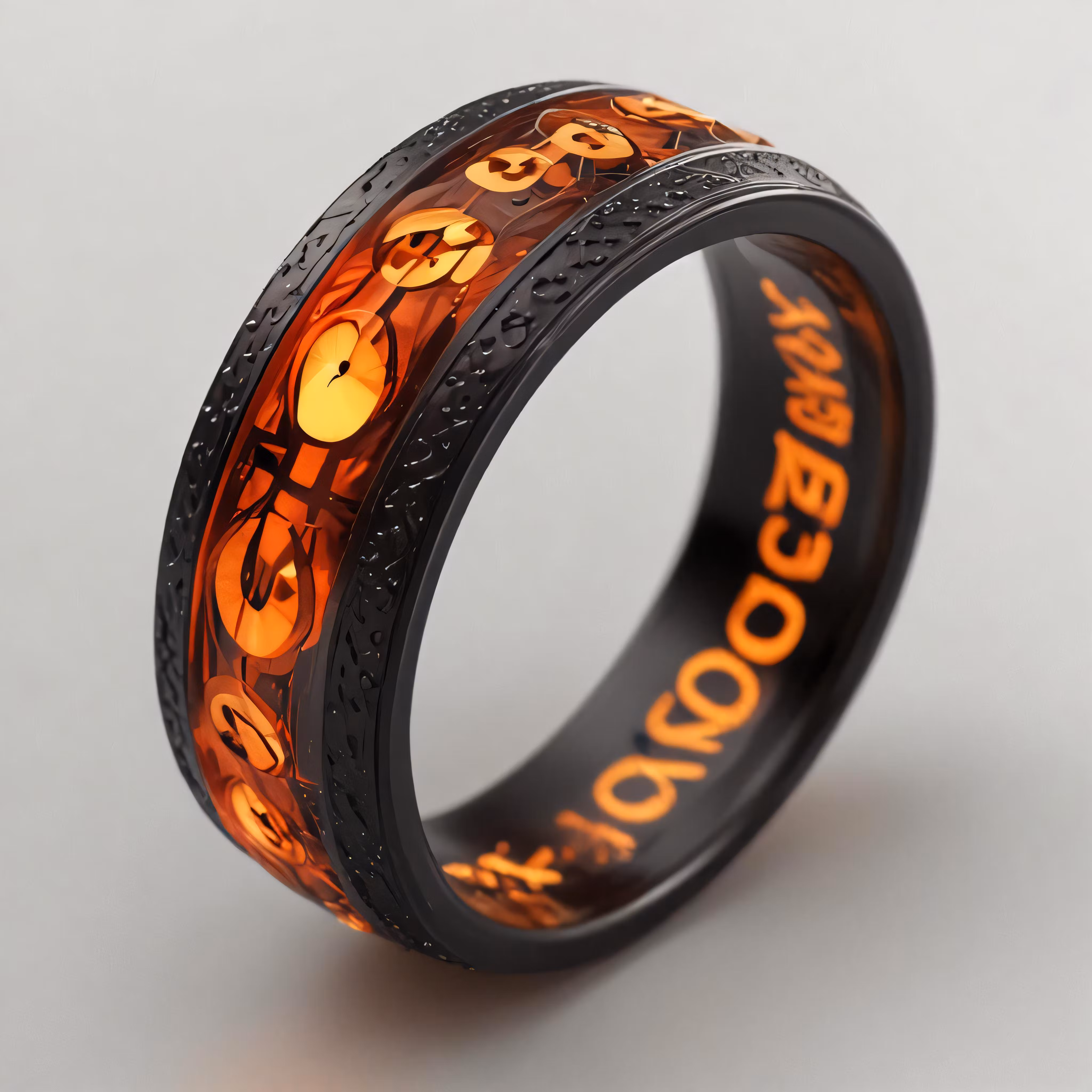 High resolution picture, free to use, a glowing ring with symbols glows through it