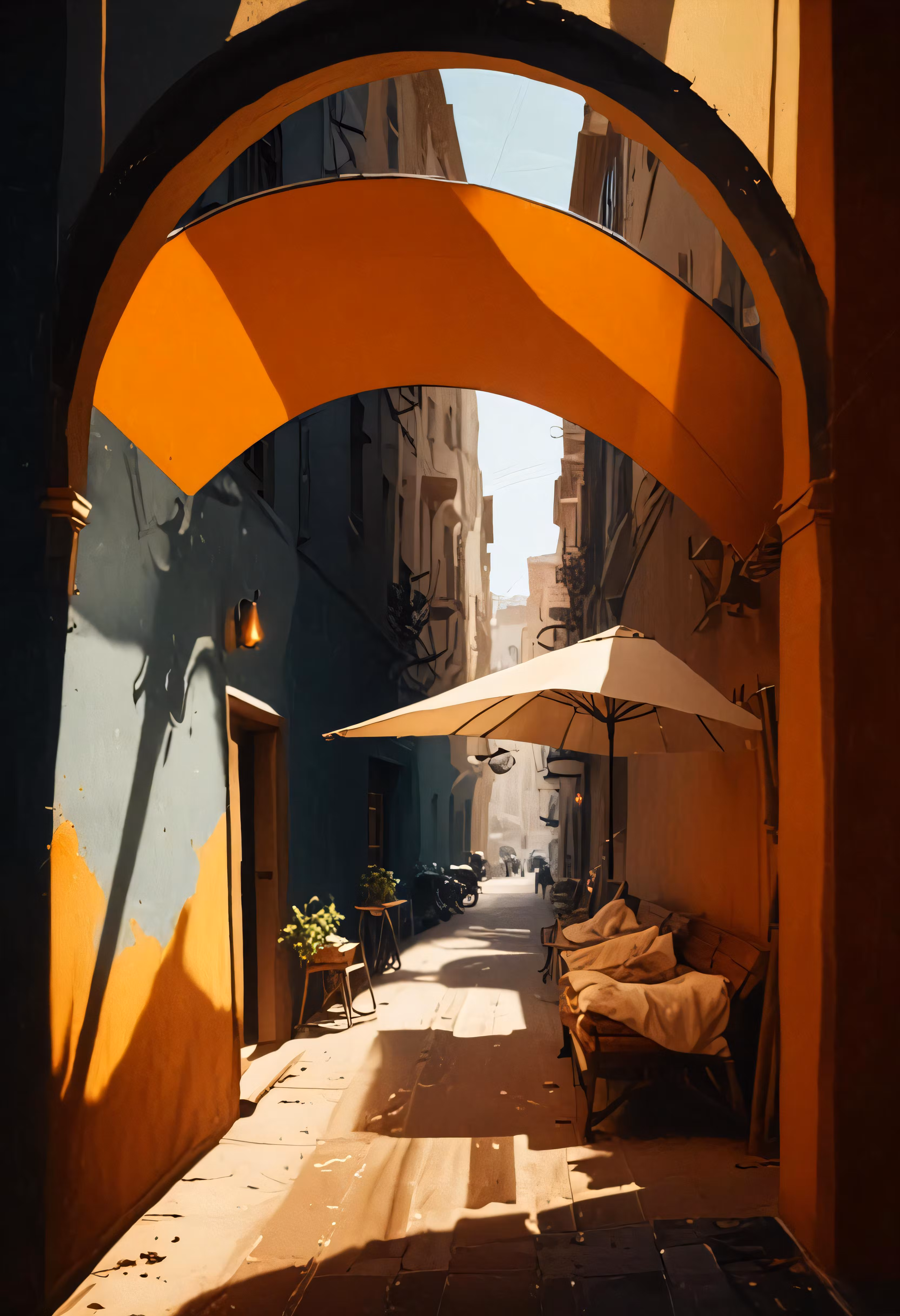 High resolution picture, free to use, a group of furniture that is underneath a large arch