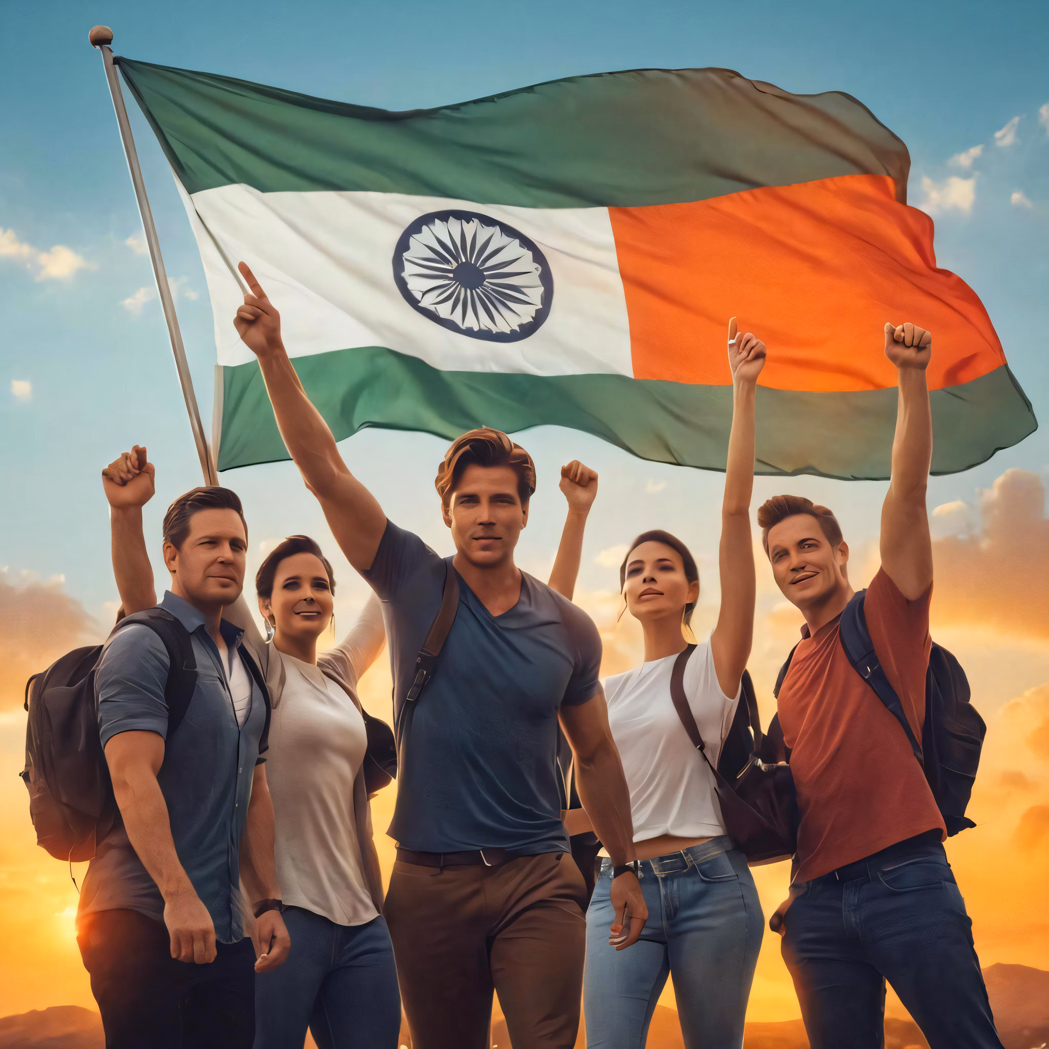 High resolution picture, free to use, a group of people holding a flag and raising their arms in the air