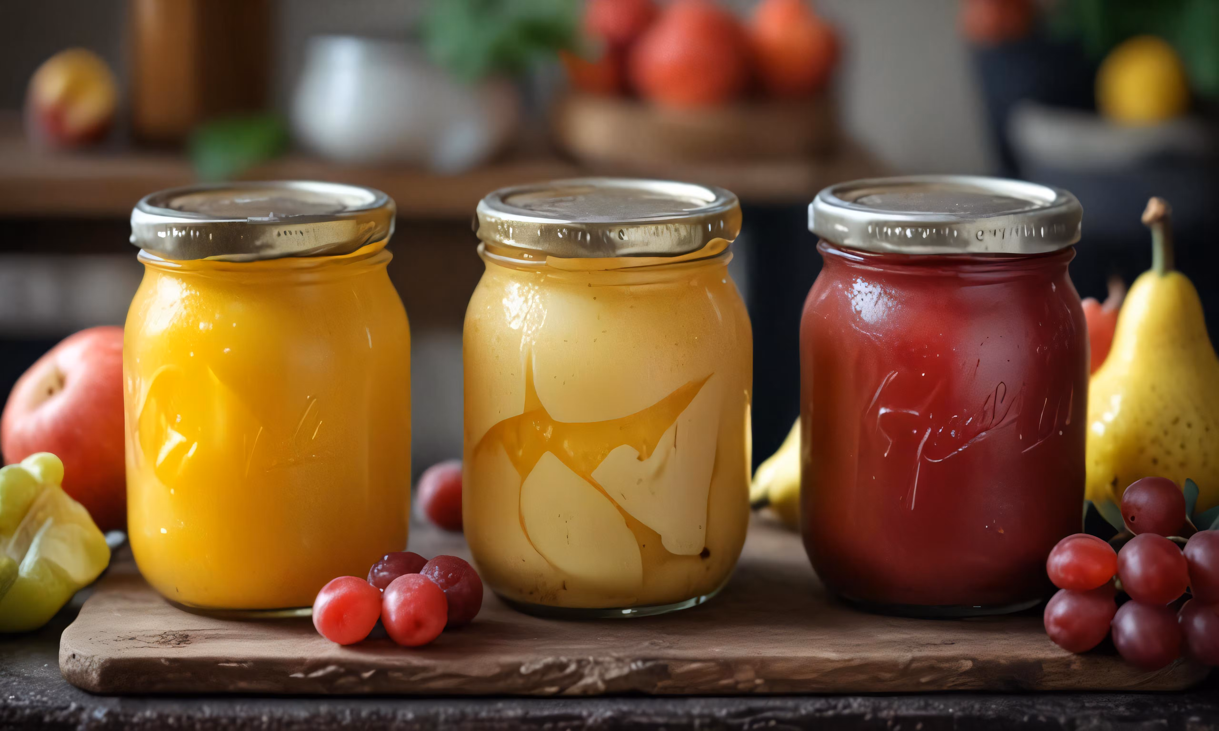 High resolution picture, free to use, a group of three jars sitting on top of a wooden table