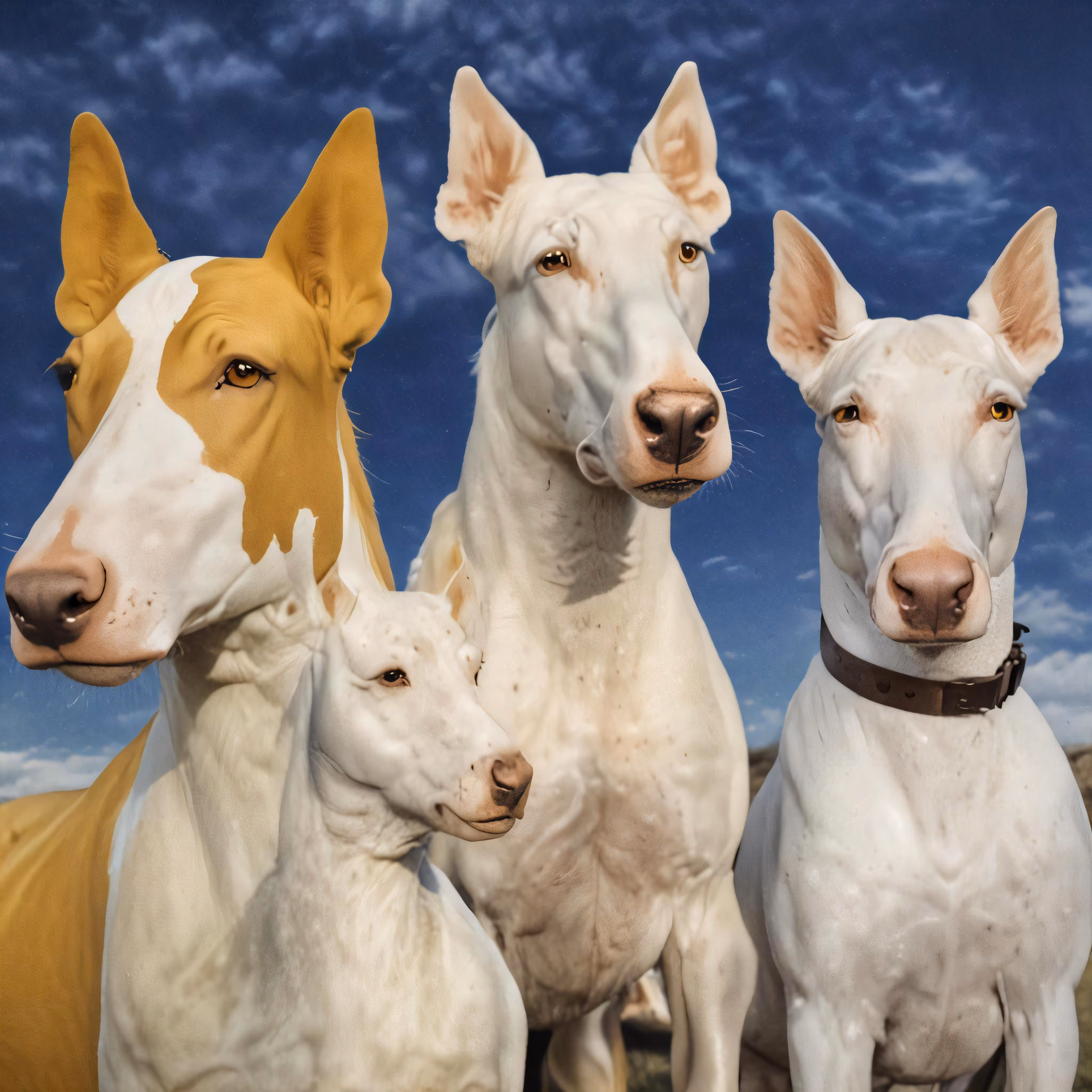 High resolution picture, free to use, a group of three white dogs standing next to each other