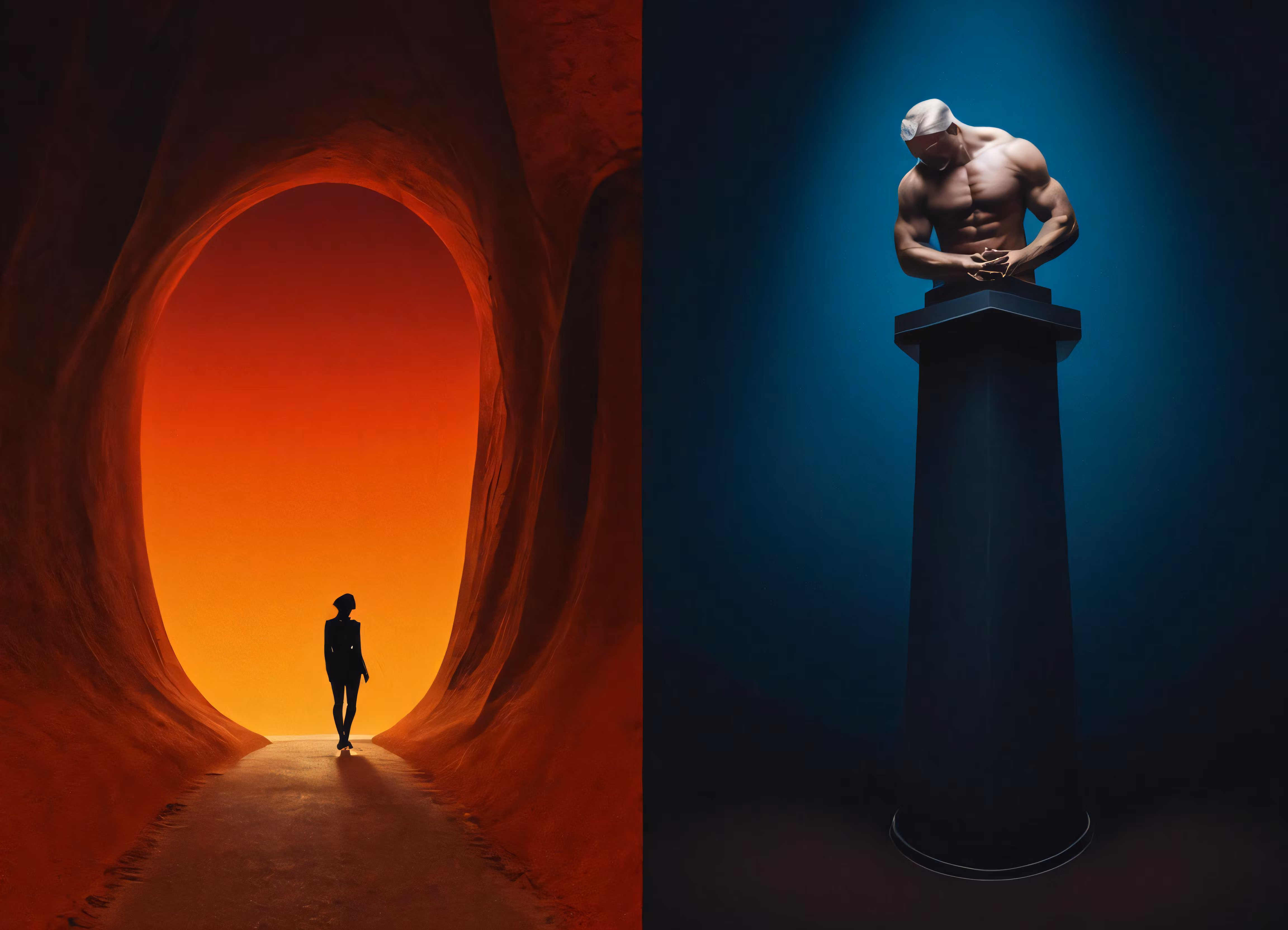 High resolution picture, free to use, a guy standing in front of the entrance to a cave