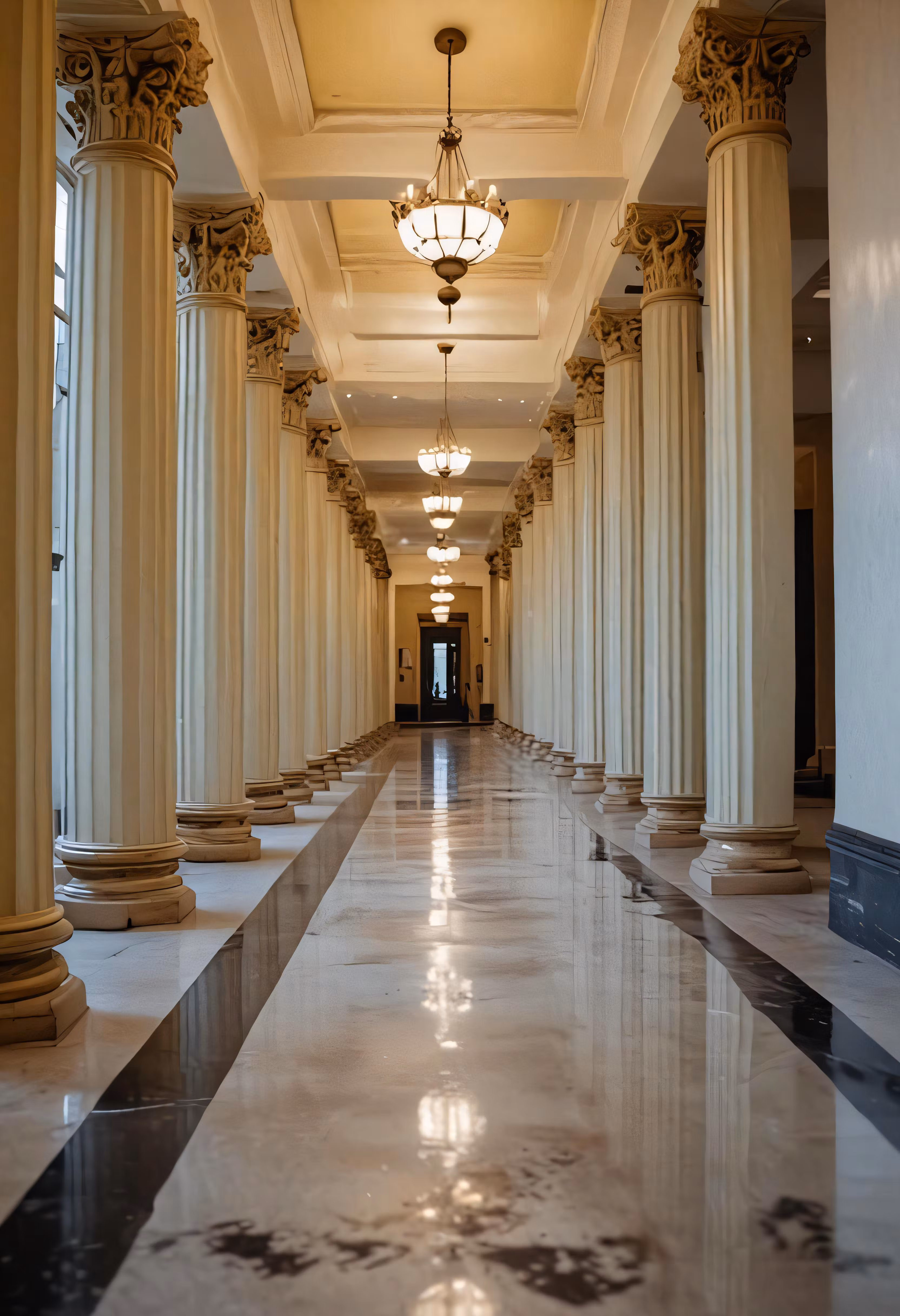 High resolution picture, free to use, a hallway of white columns lined up between each other