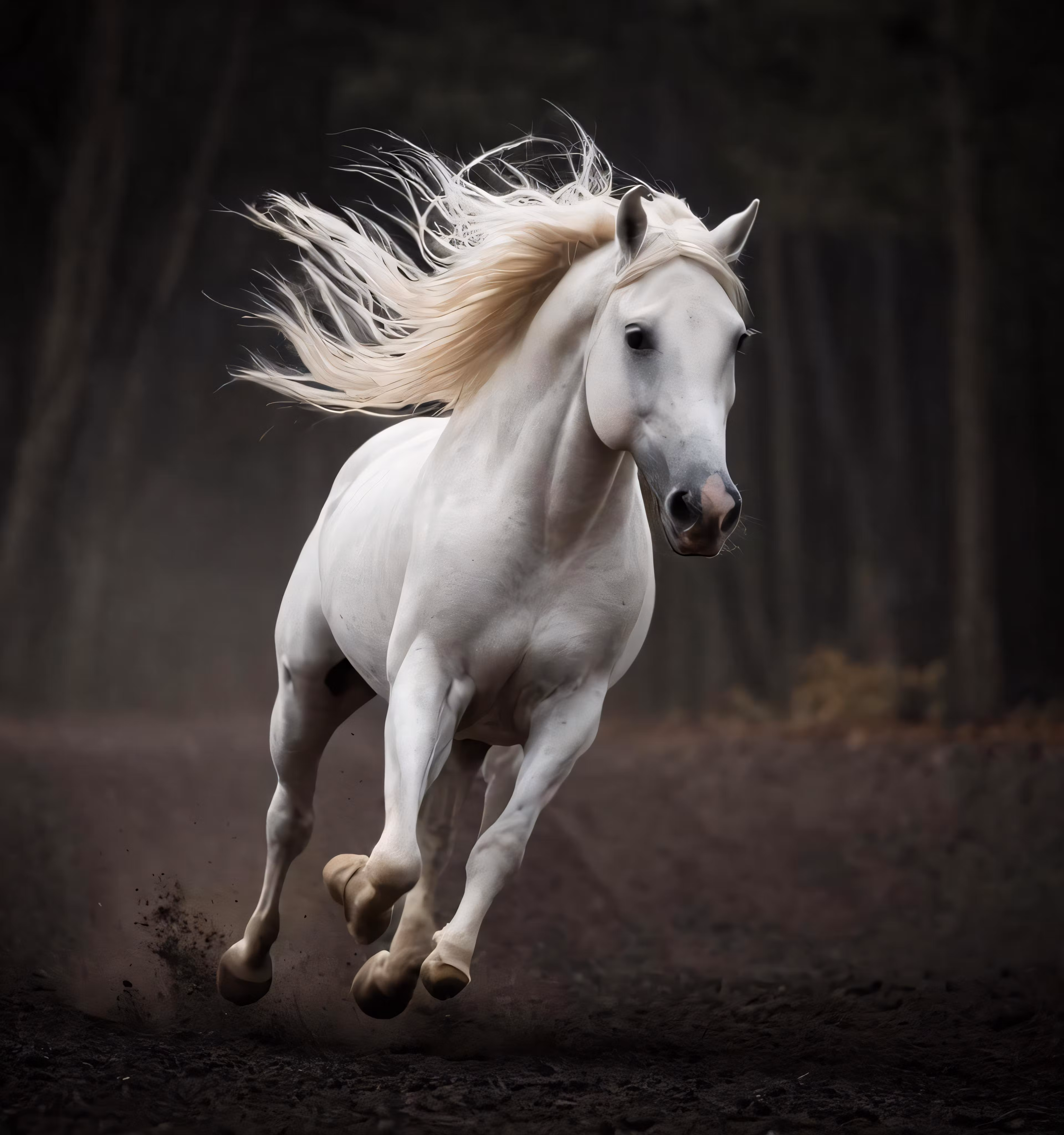 High resolution picture, free to use, a horse runs in the woods through its own path