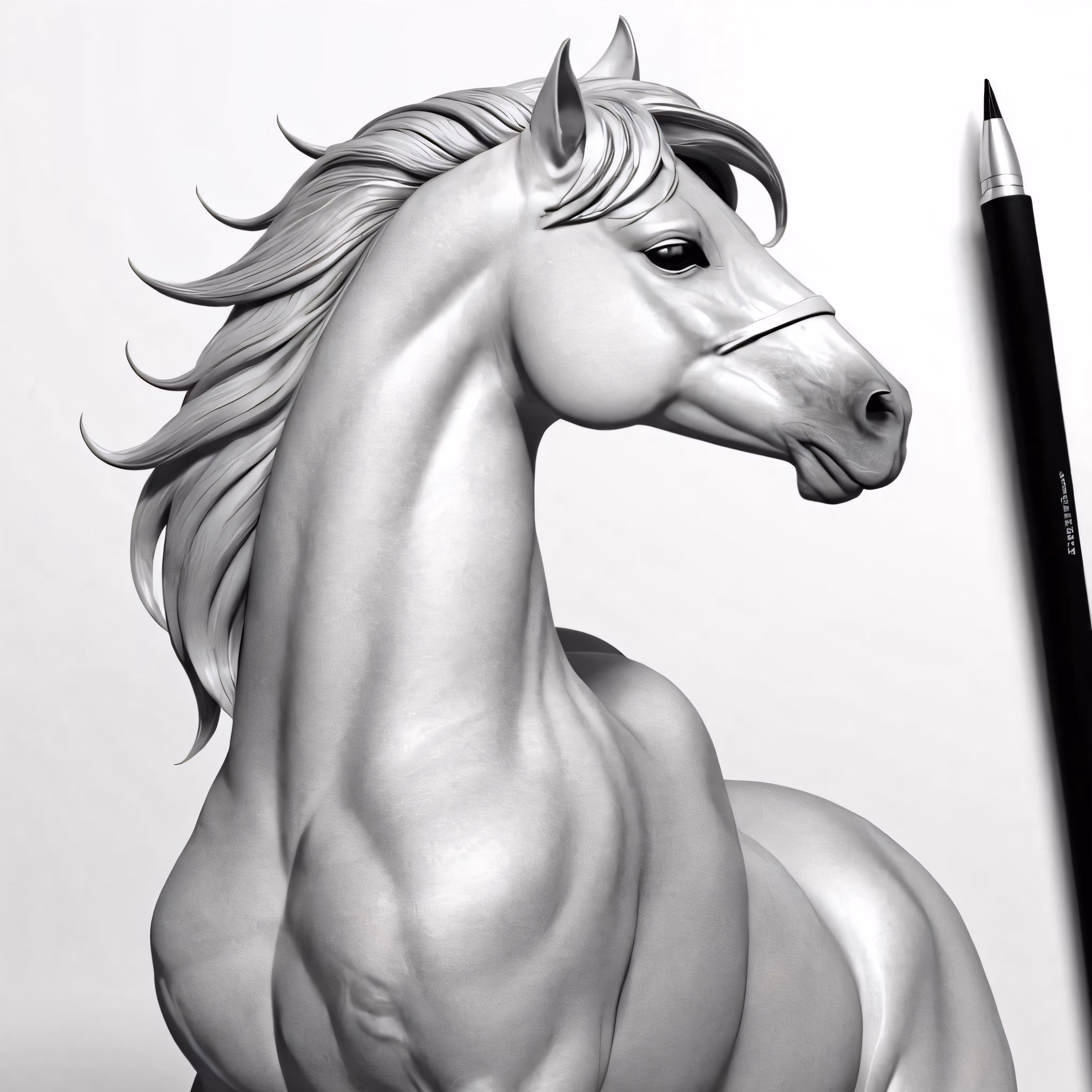 High resolution picture, free to use, a horse statue in pencil on the table