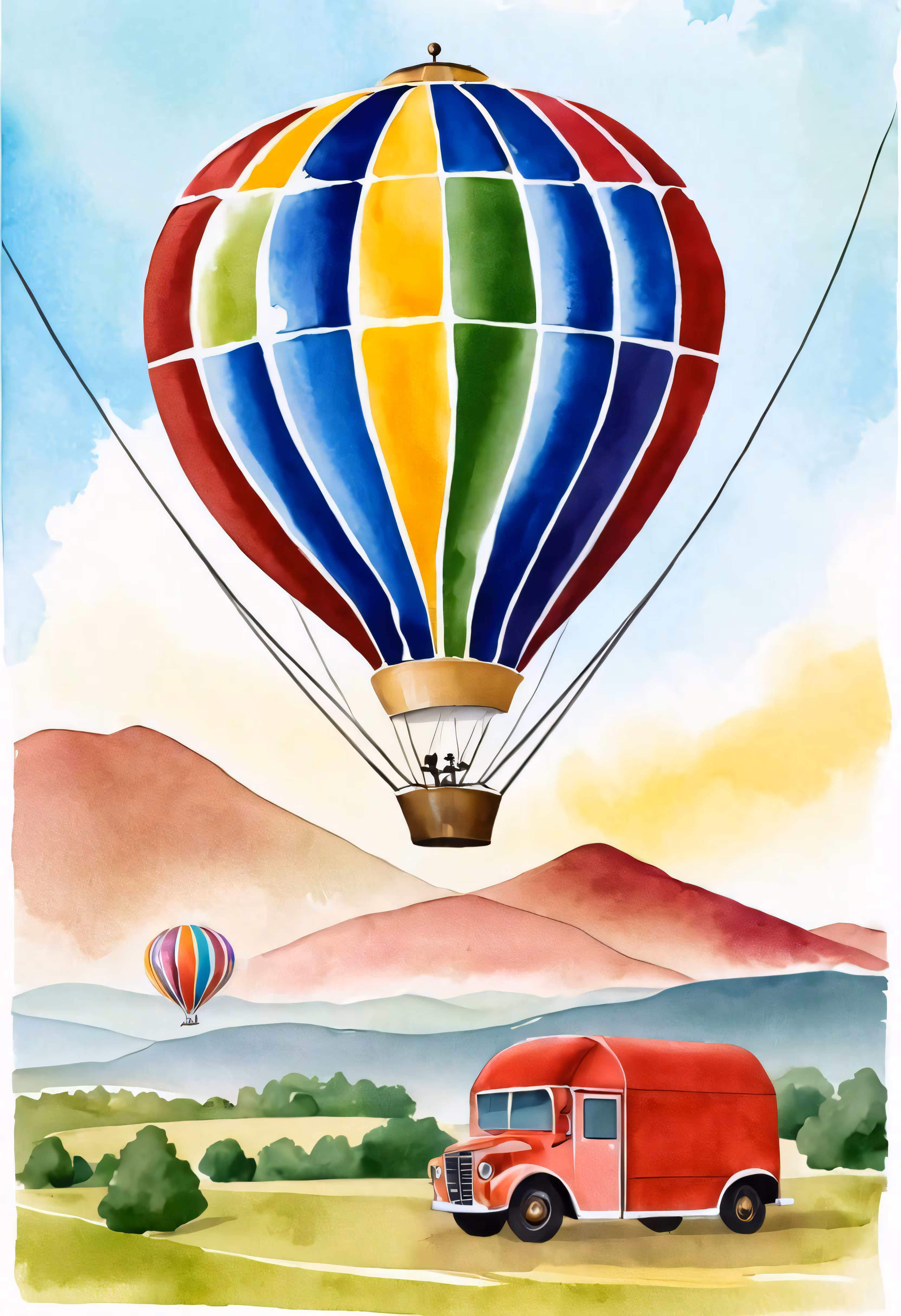 High resolution picture, free to use, a hot air balloon over a flat earth field